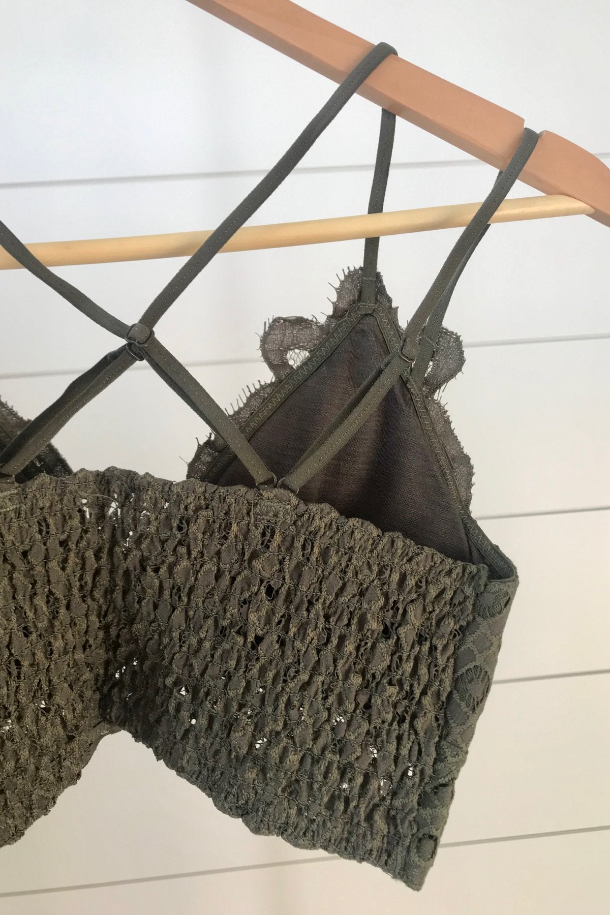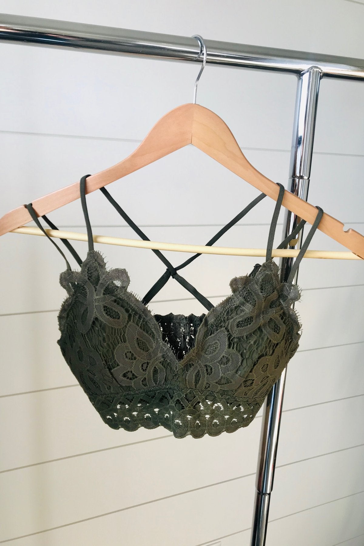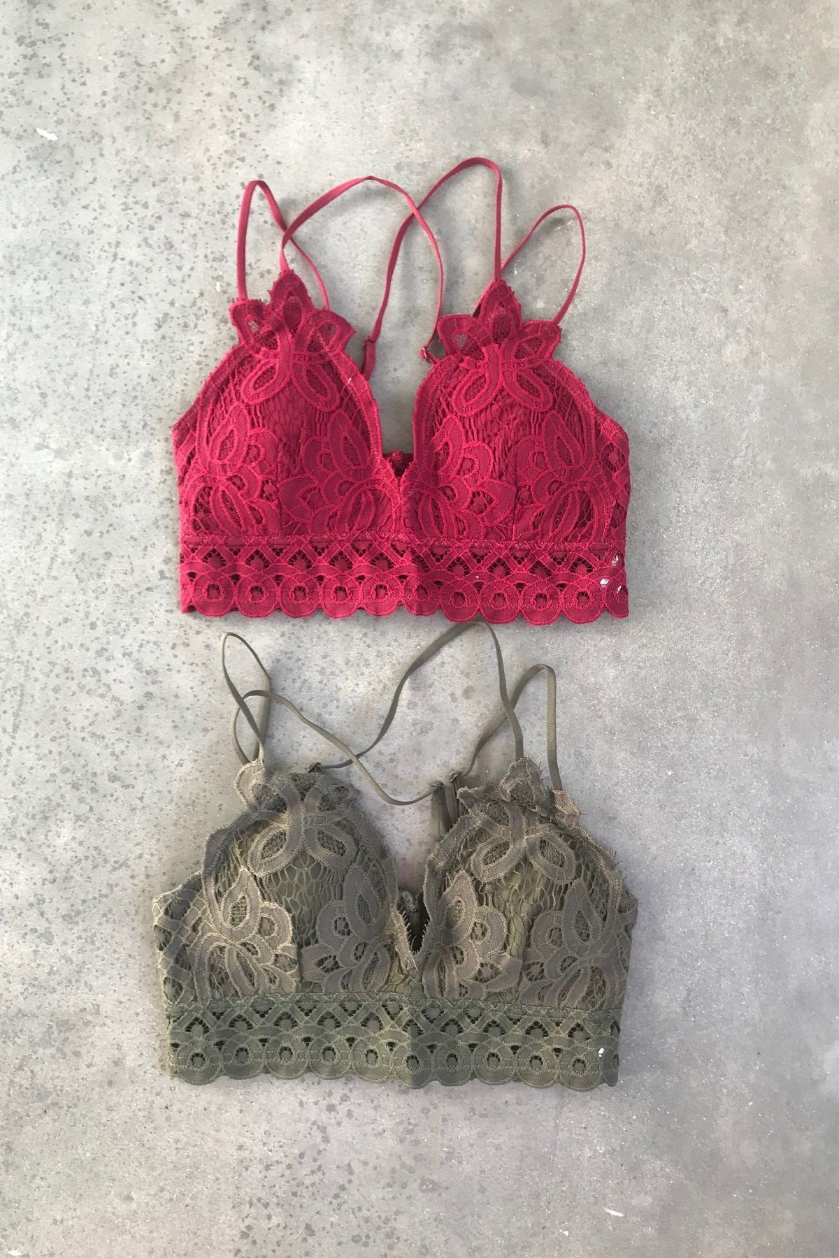 HydBack by popular demand ... and YOU'LL squeal with delight when you get your hands on one of these beautiful lace bralettes! The gorgeous lace will make you feel like a princess, or duchess at the very least. It features four slender, adjustable, elastic straps that add to the daring, smocked lace detail on the back with a graceful X. The cups feature removable pads for your comfort and coverage, and we are thrilled to be offering it in a wide range of sizes.