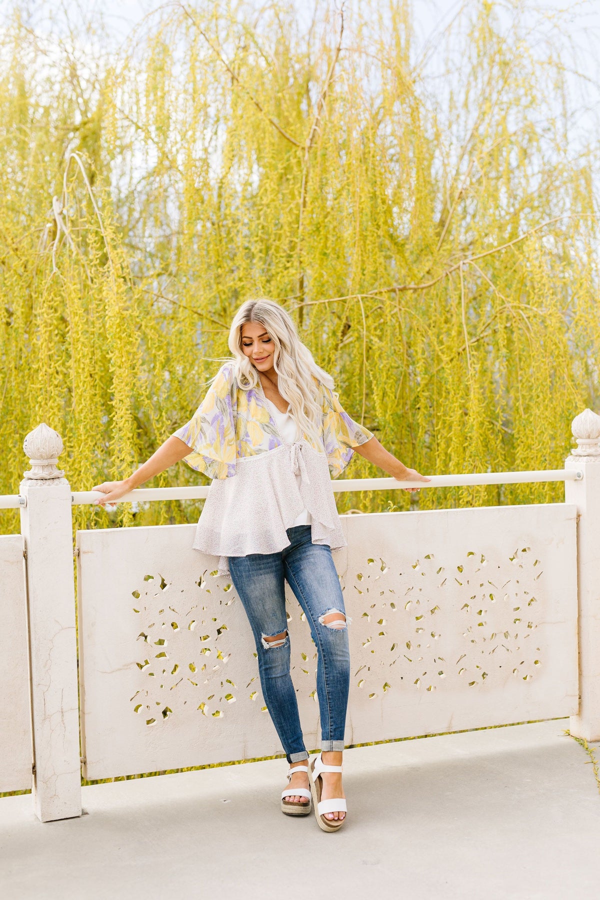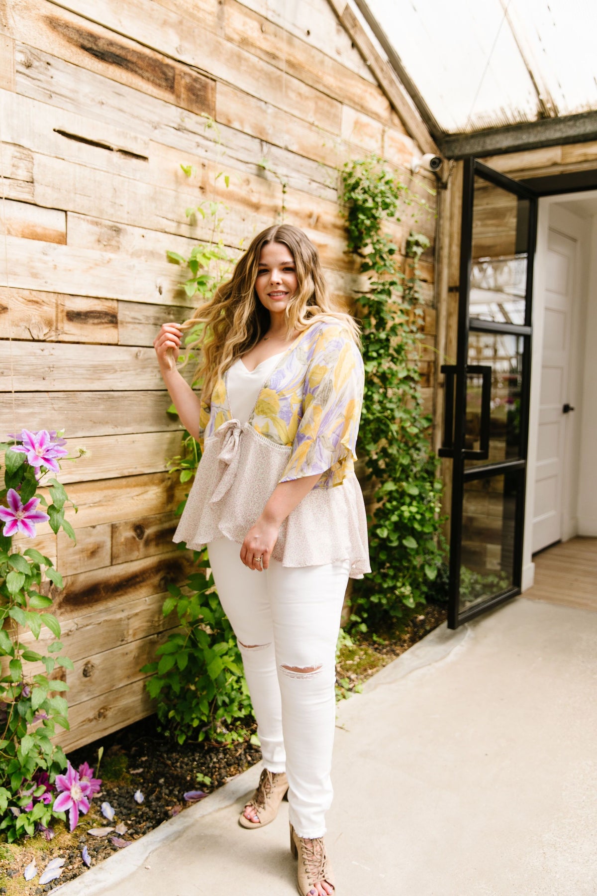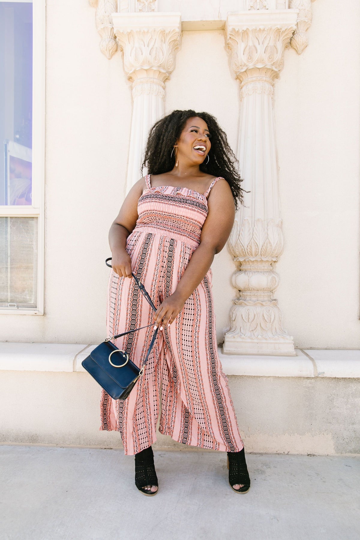 Wherever your headed let this Romper accompany you in style! A woven polyester shapes this lightweight romper, with kimono style sleeves, surplice neckline, and elastic waistband with tie detail. We are loving this pink and chic piece paired with white sandals and a white bag!