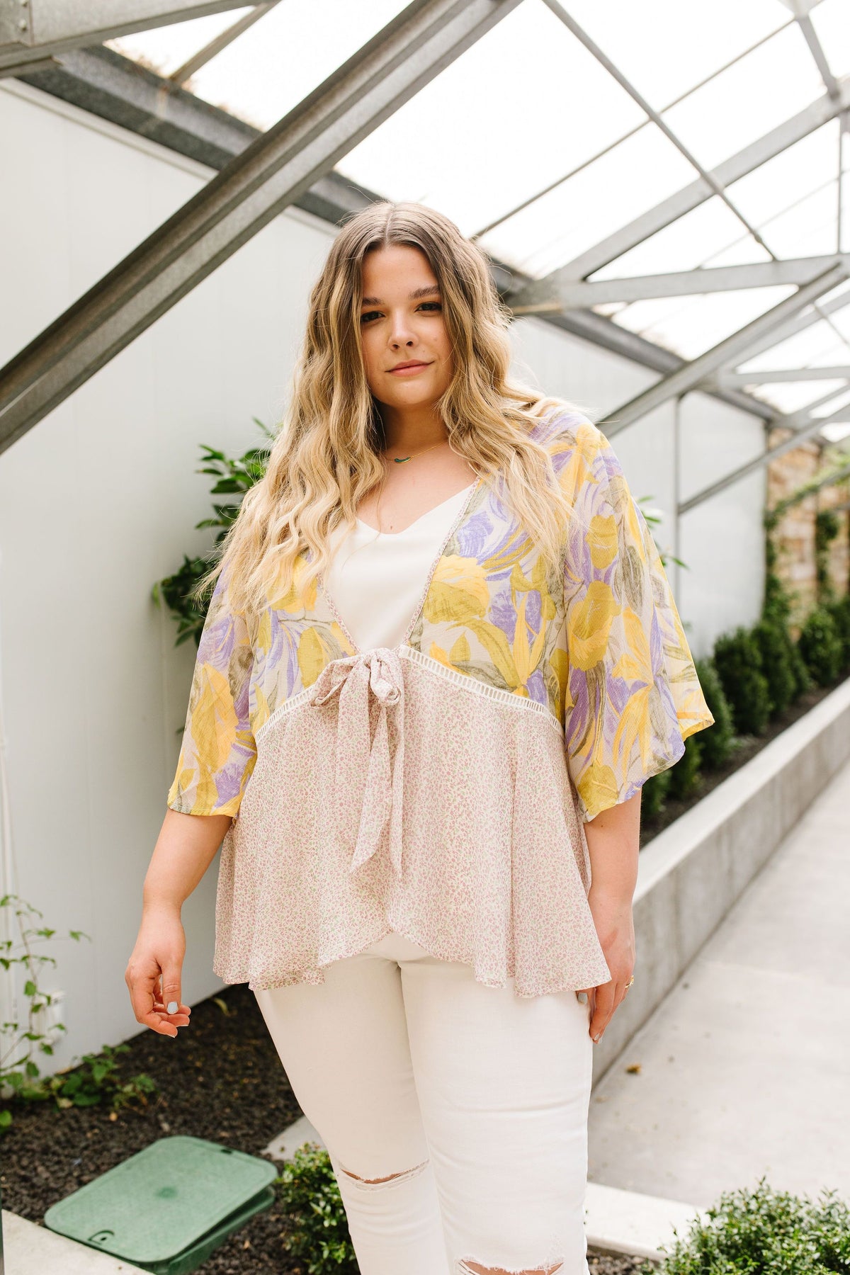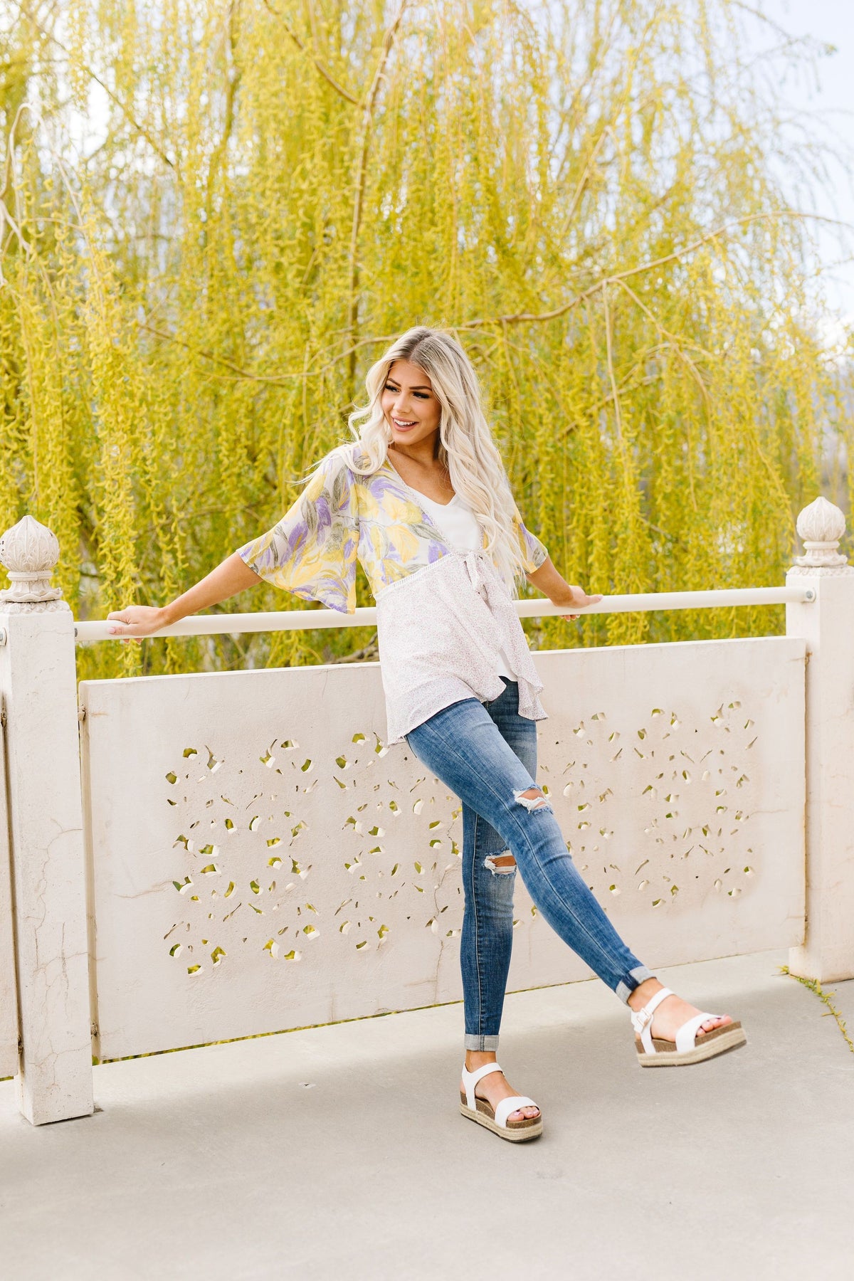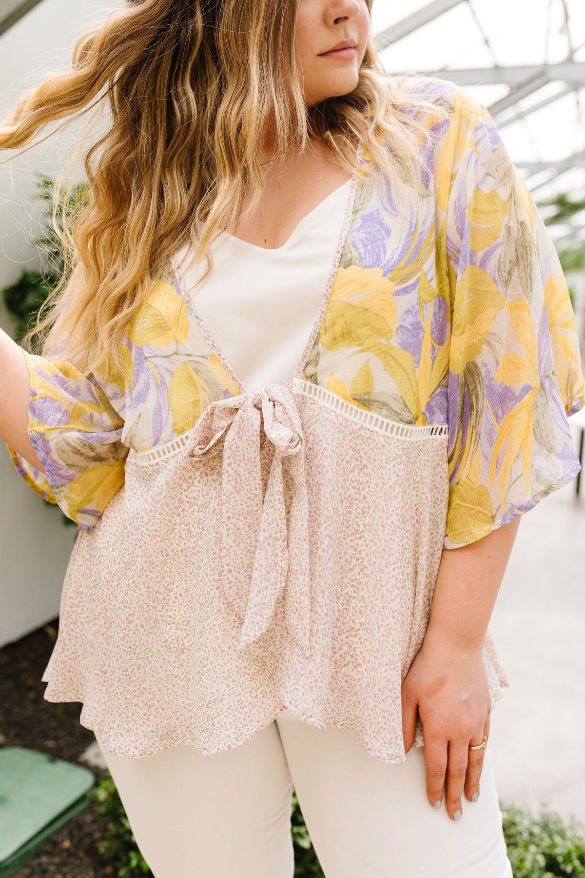 Wherever your headed let this Romper accompany you in style! A woven polyester shapes this lightweight romper, with kimono style sleeves, surplice neckline, and elastic waistband with tie detail. We are loving this pink and chic piece paired with white sandals and a white bag!