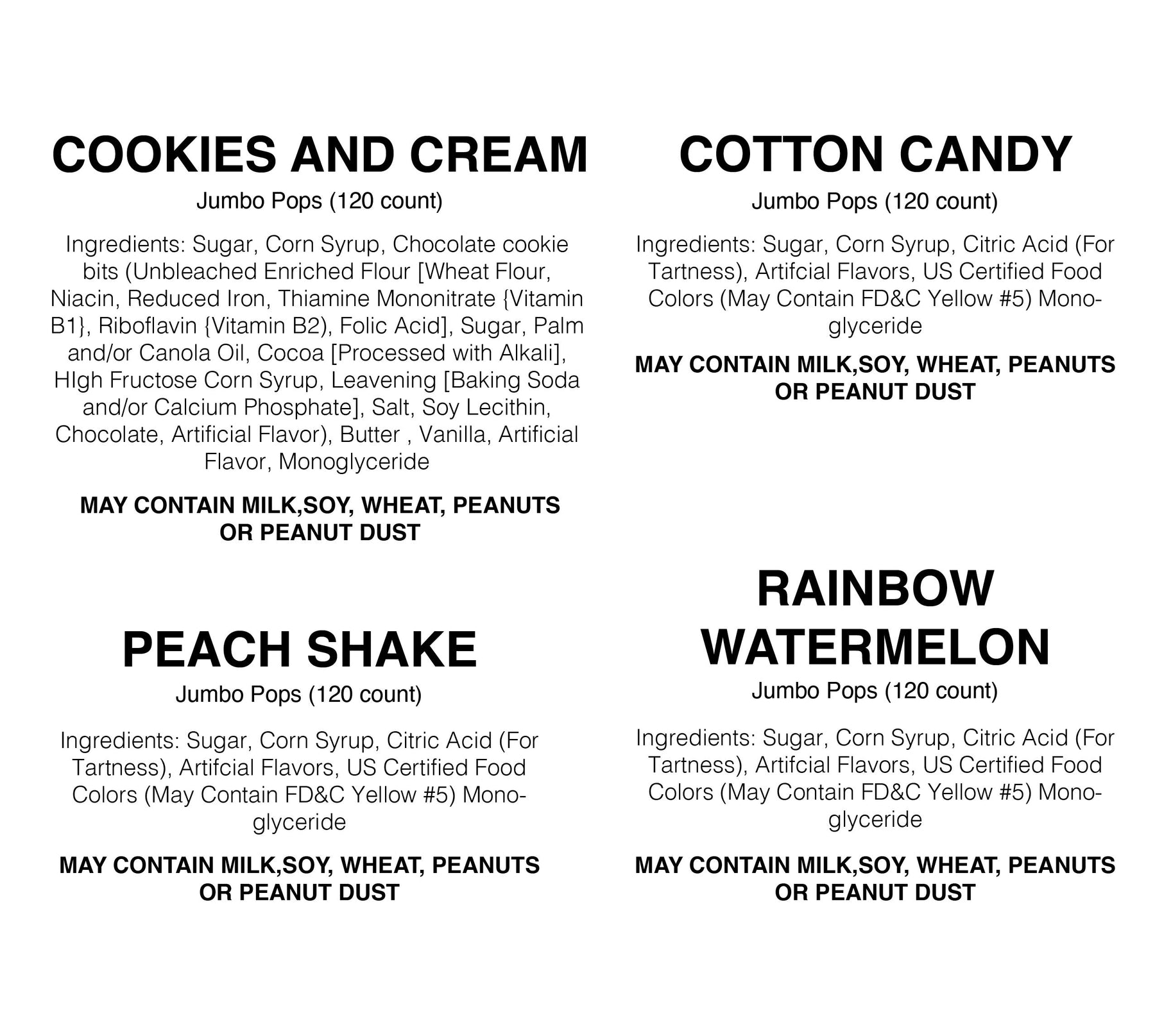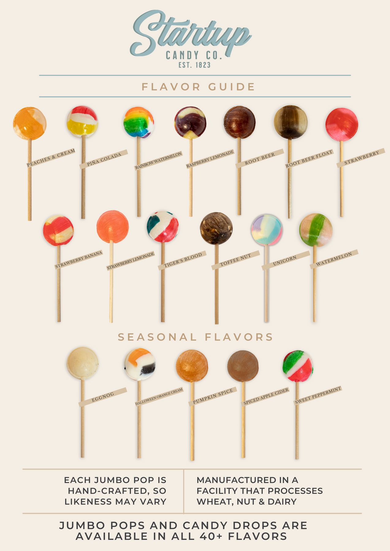 Regular price $1.99 Save $-1.99A single wrapped Jumbo Pop, over 40 flavors to choose from. Each Pop is hand-crafted with the same recipe that has been used for over 150 years.