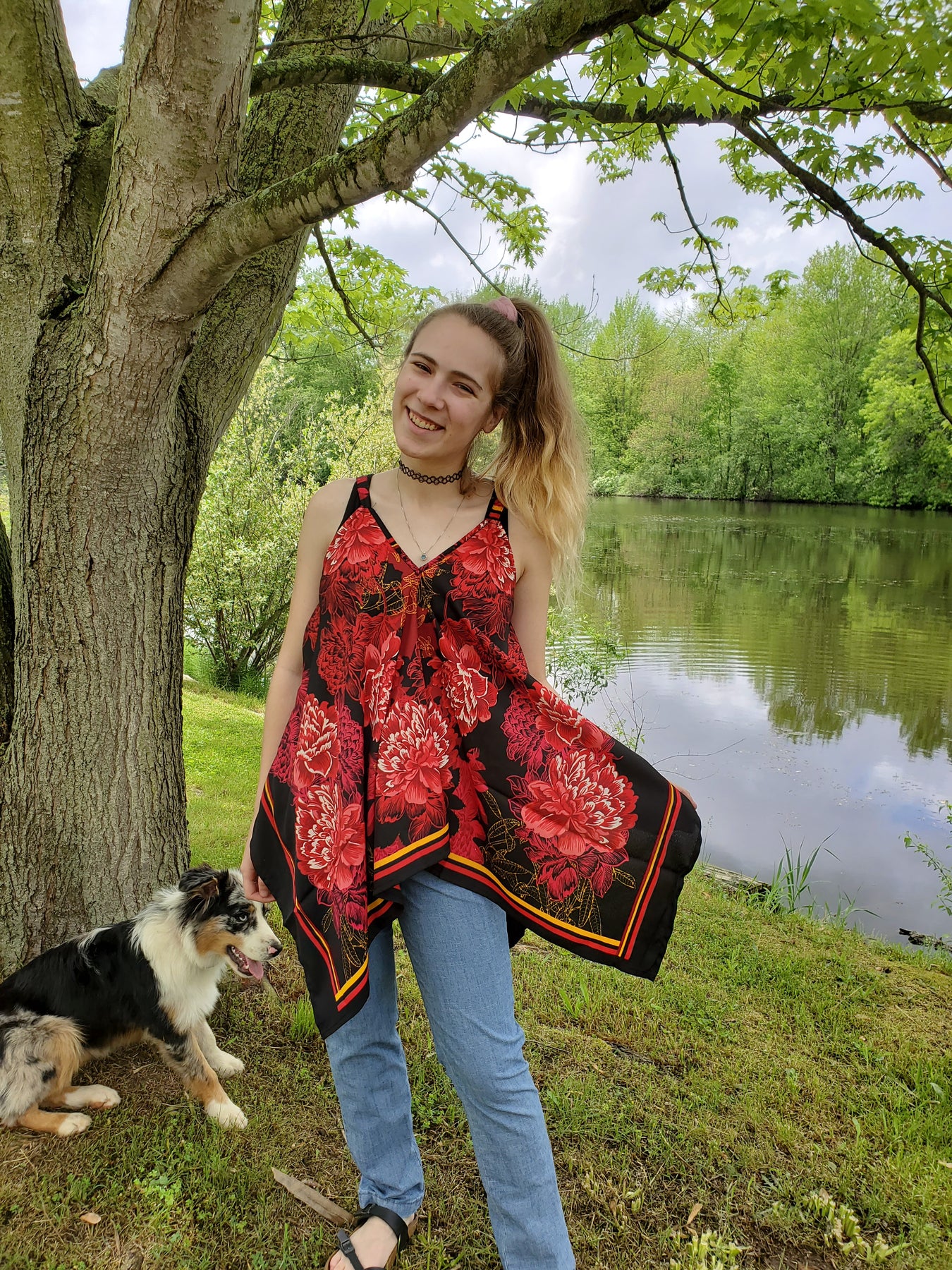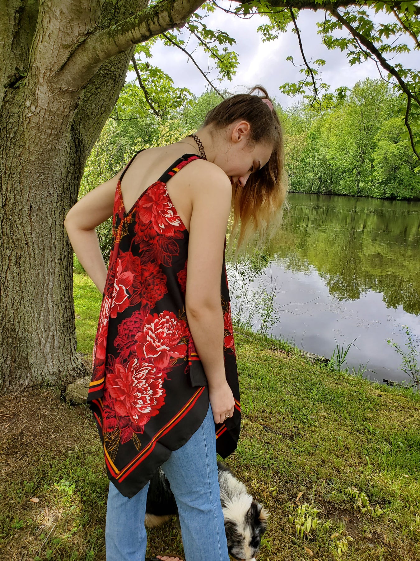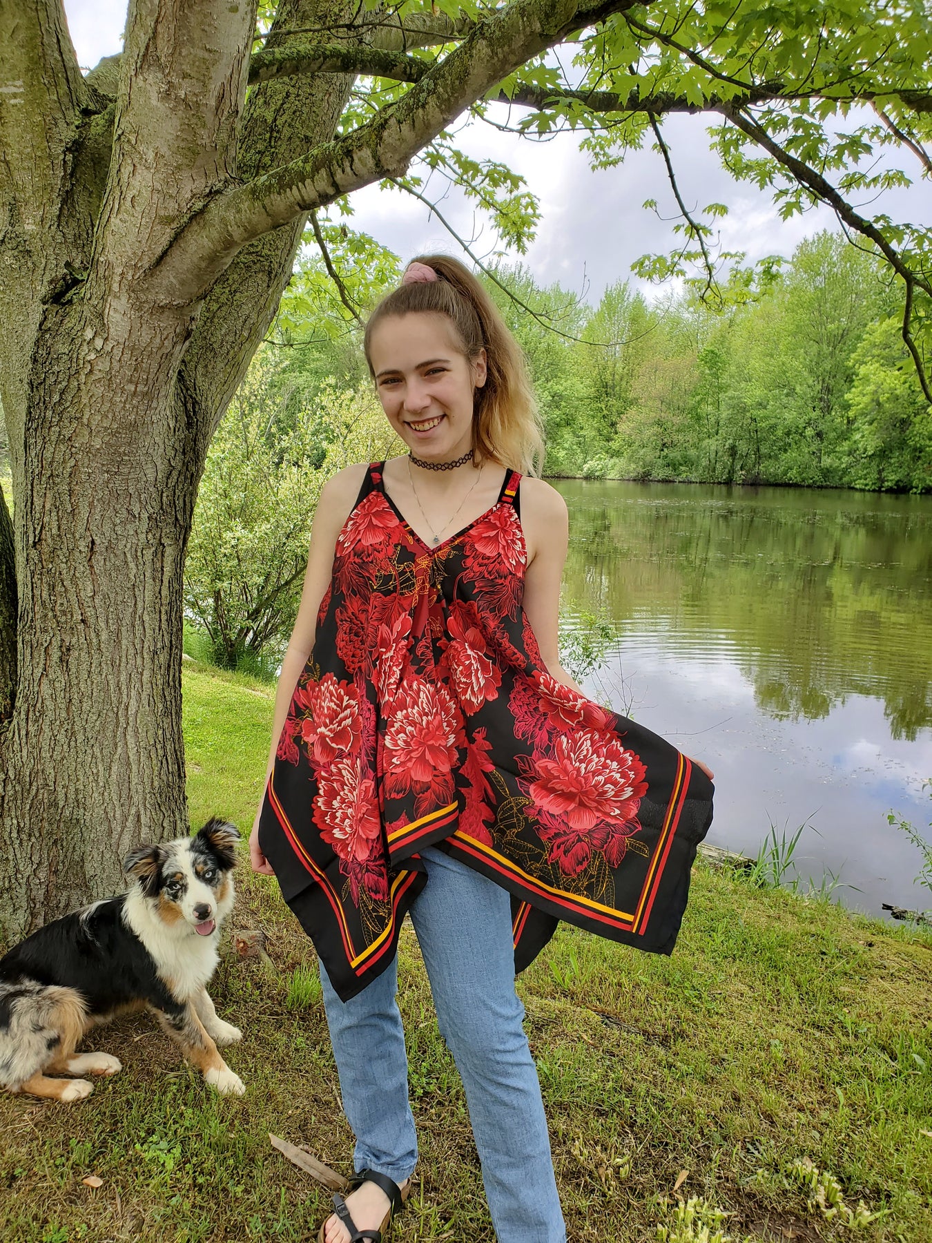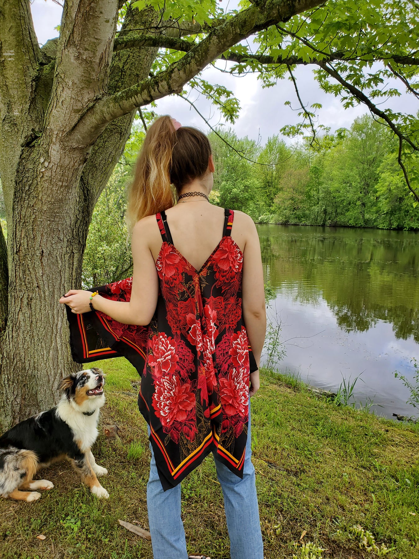Fabric: 80% Rayon, 15% Polyester, 5% Spandex (brushed hacci knit fabric has stretch)