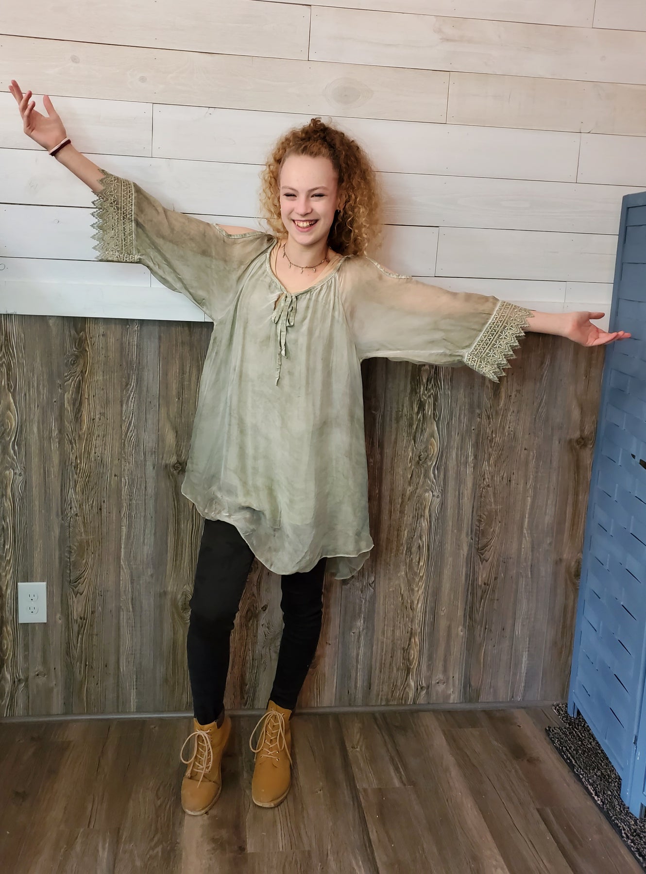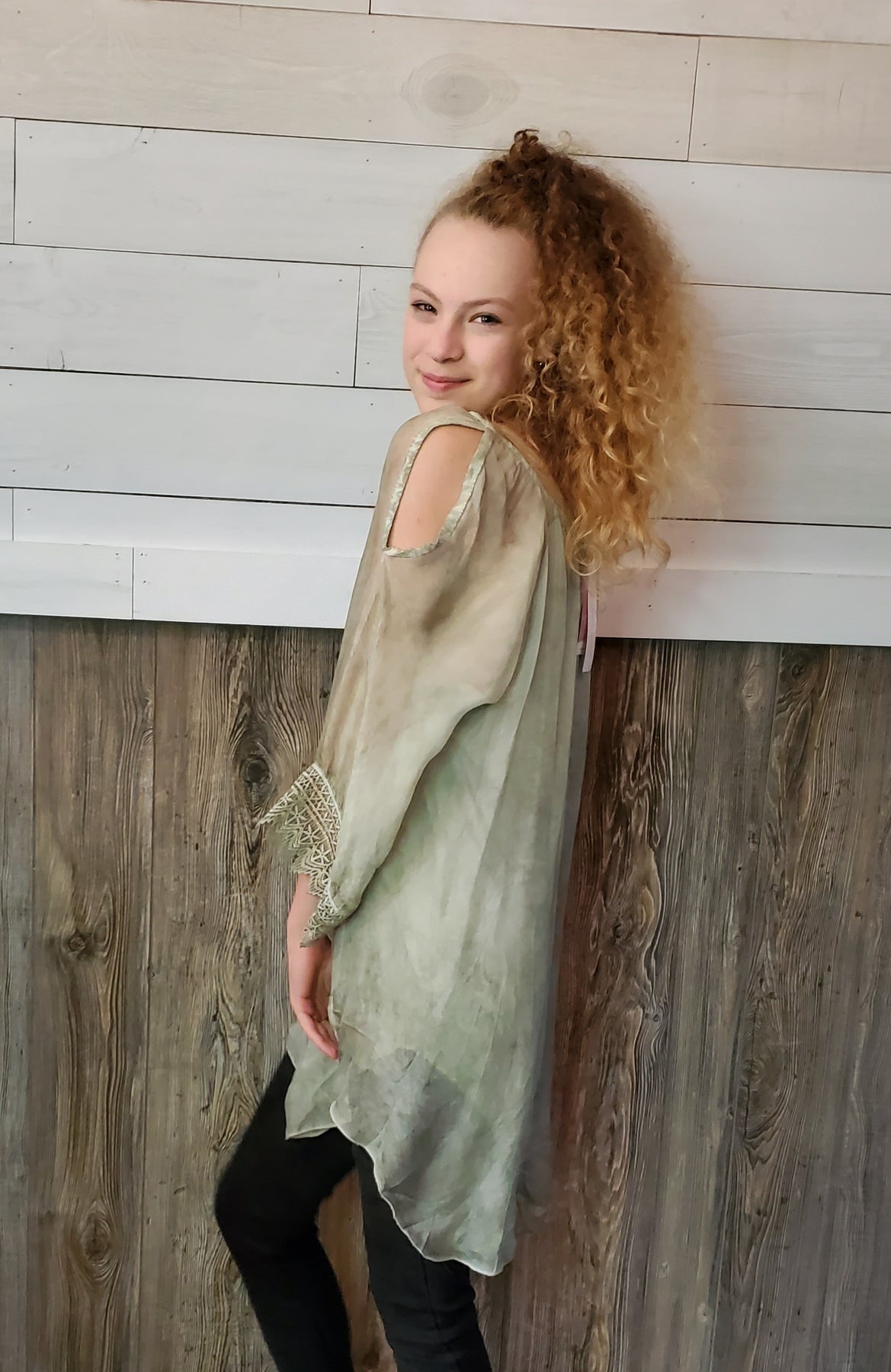 Handcrafted in Italy this gorgeous cover up could swing all the over to a cute top for a night out on the town.