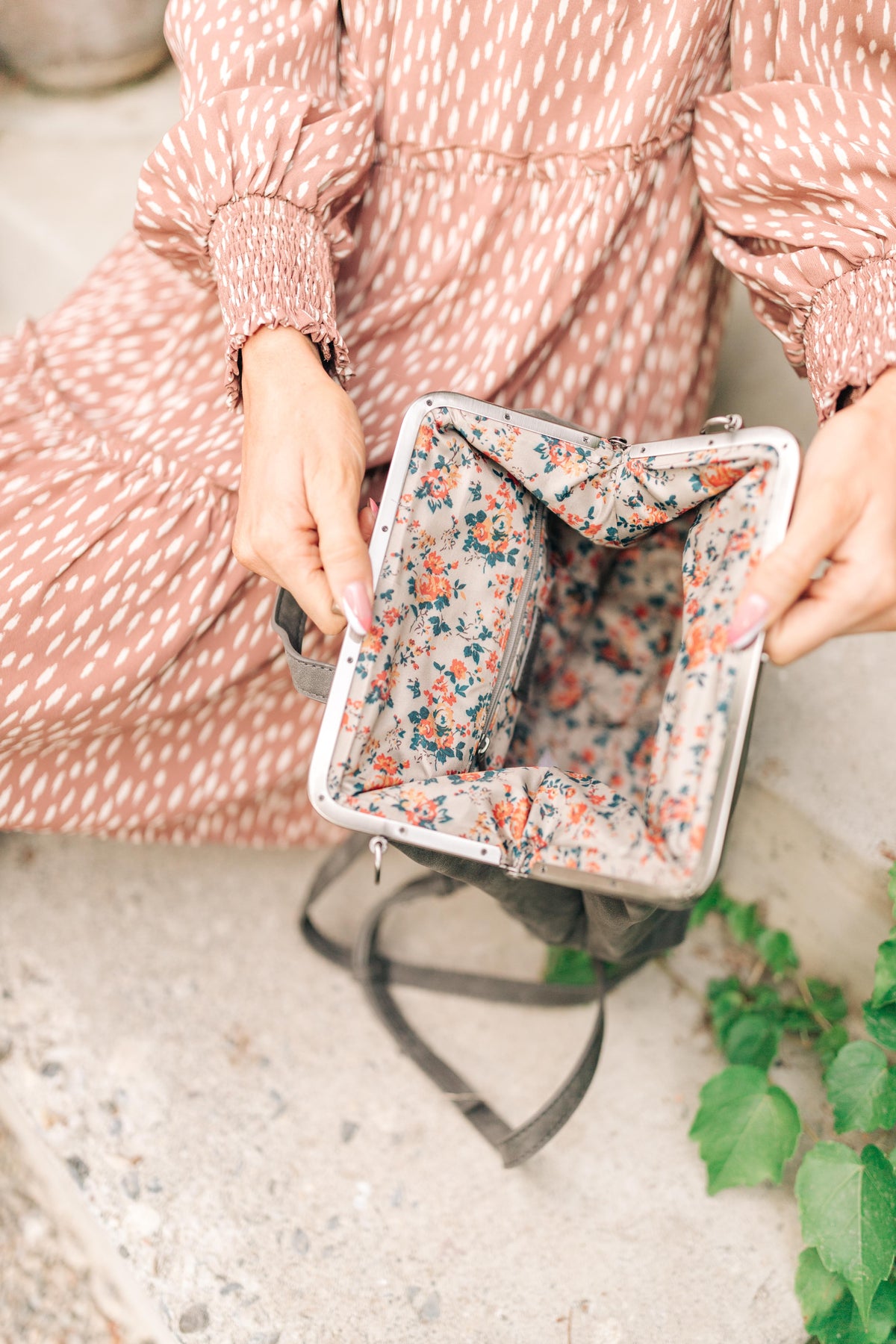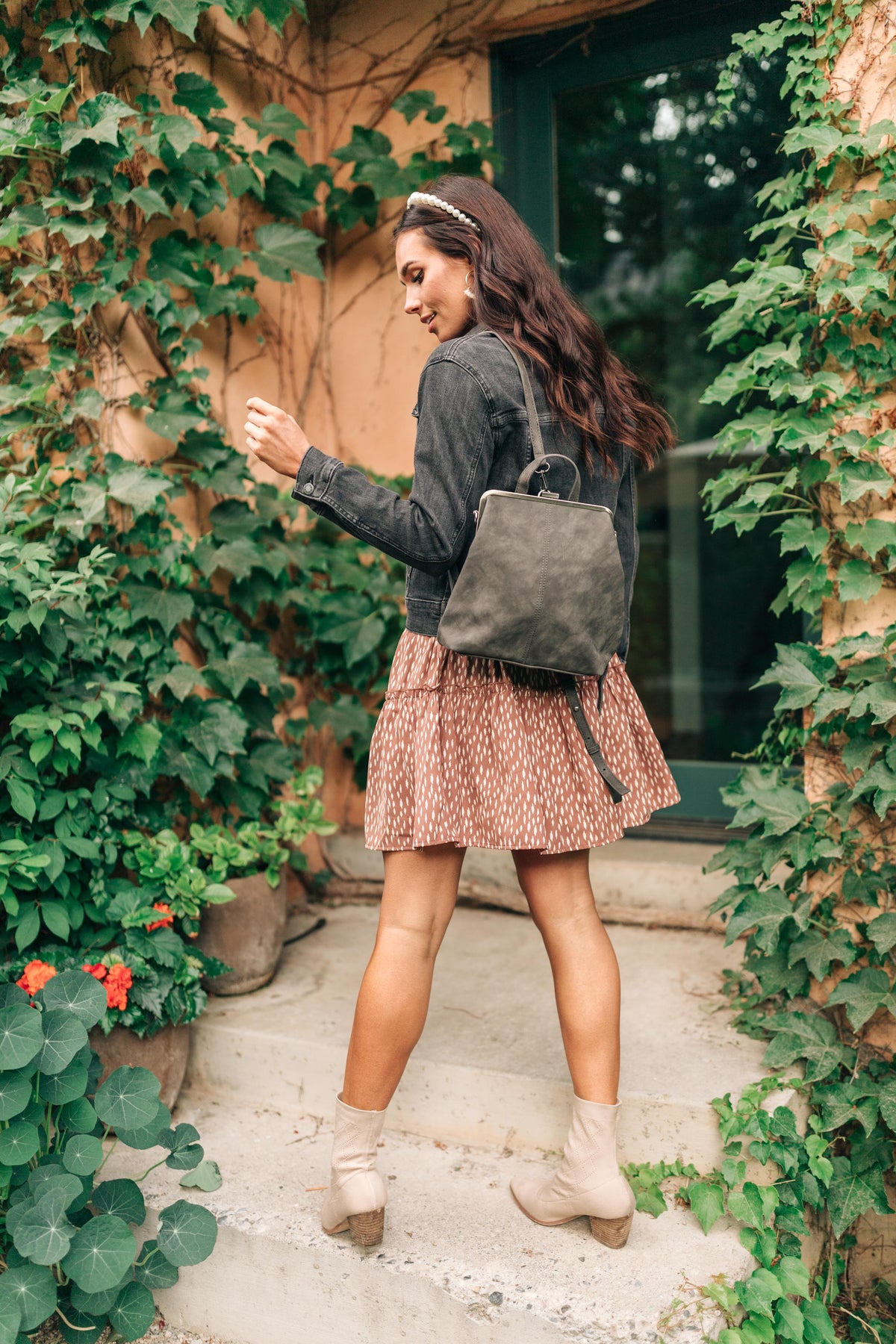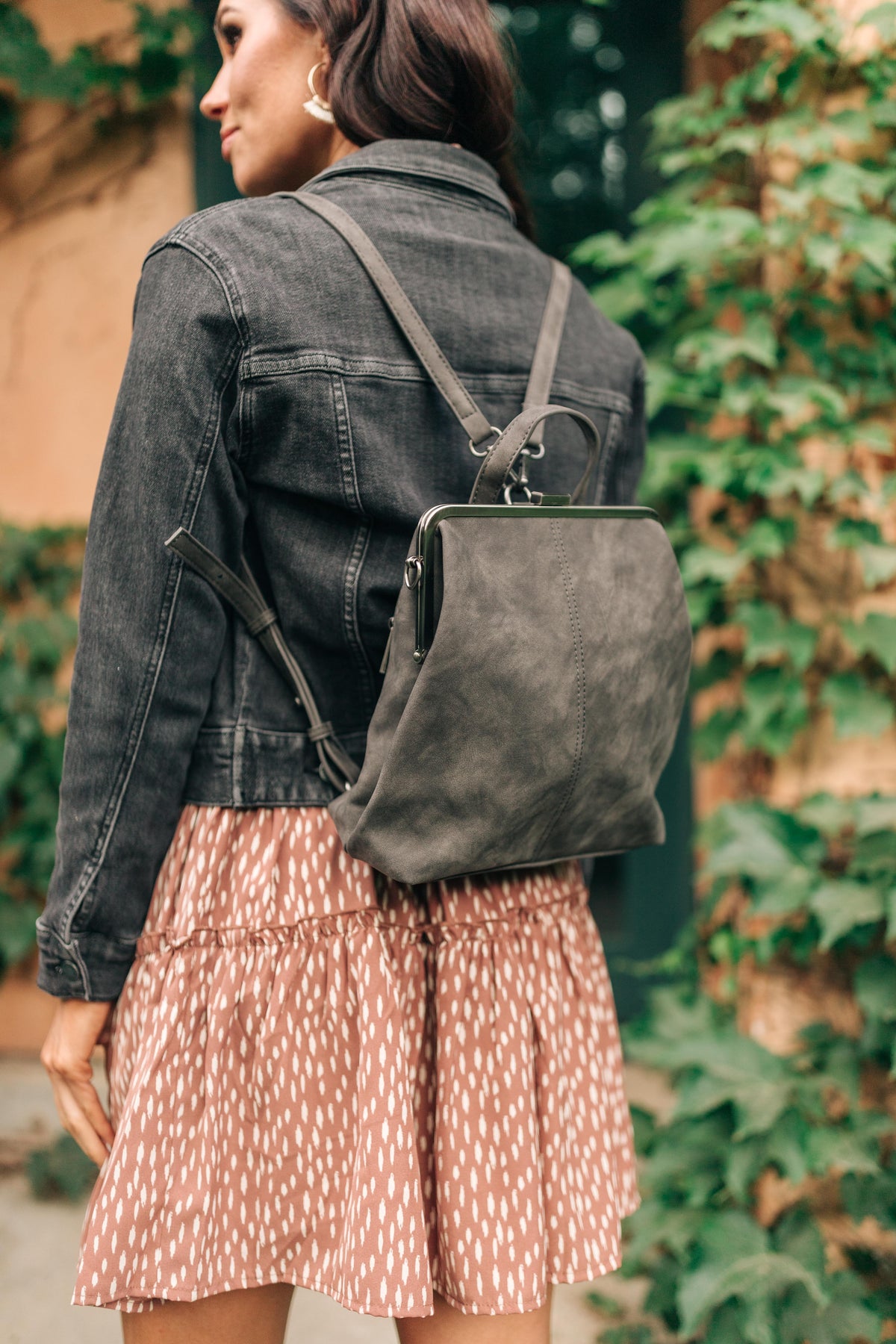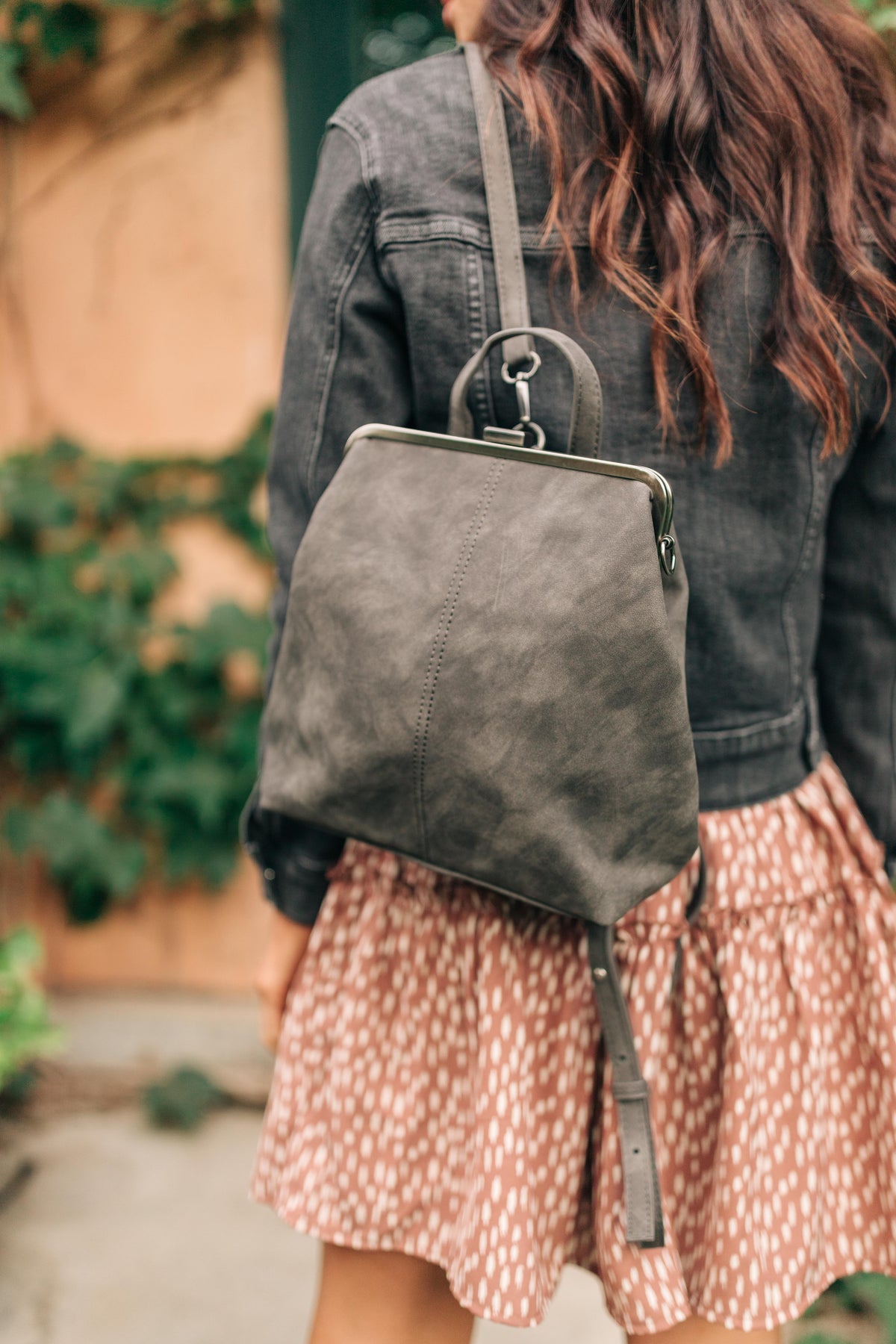 This bag was designed to be absolutely hands-free! This is the kind of dainty little backpack that you can take anywhere with you and feel trendy and confident! It's a perfect size and has a lovely floral print lining inside! Not to mention, it's very high-quality and the prettiest shade of charcoal!