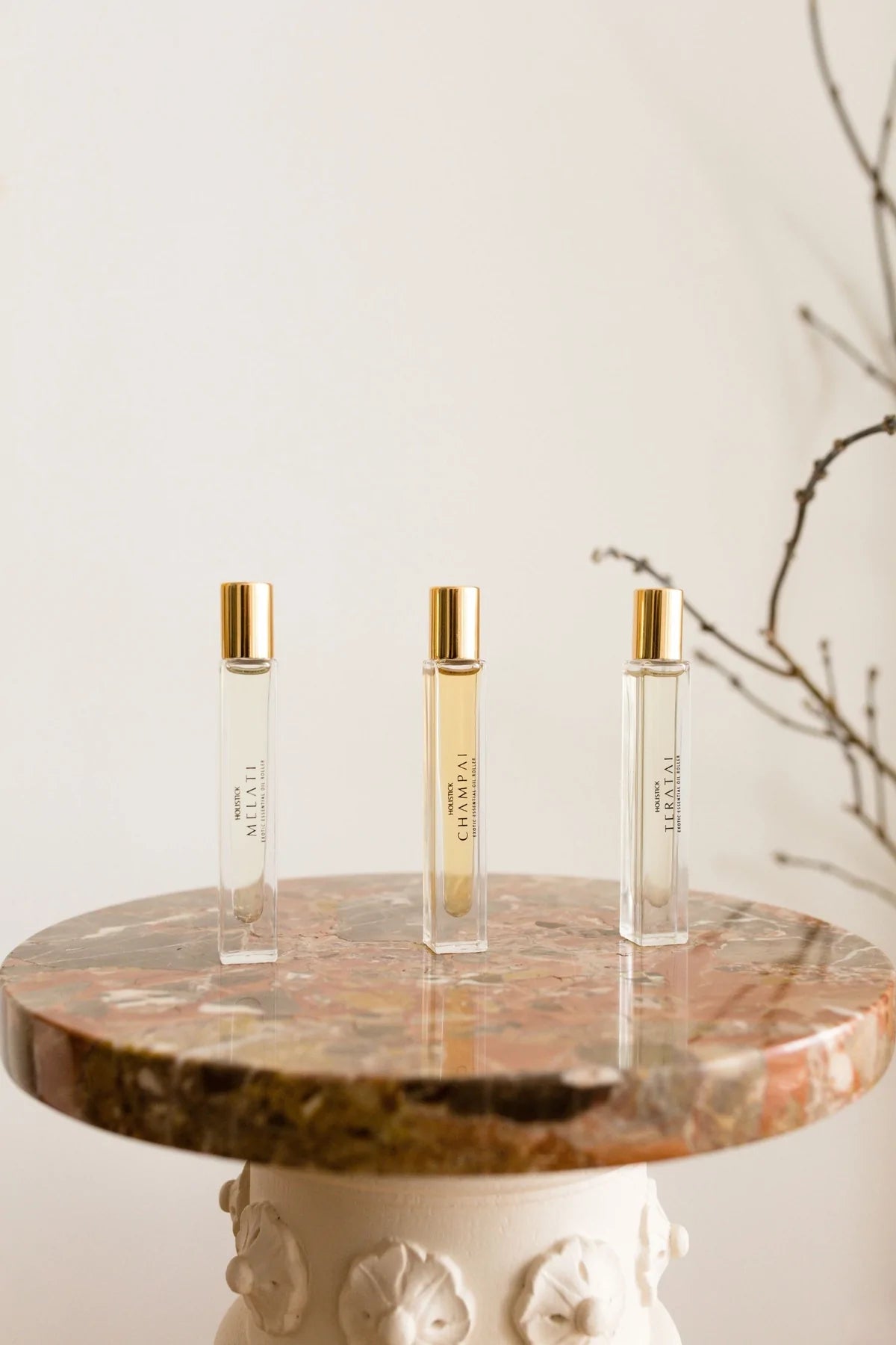 CHAMPAI [CHUM-PAI]: Champai natural perfume is made with Indonesian champaca flowers; which is considered one of the world’s most expensive essential oils. This flower has been used for hundreds of years during times of worship and celebration. CHAMPAI is especially sacred due to its uniquely sensual, sultry and seductive floral scent.