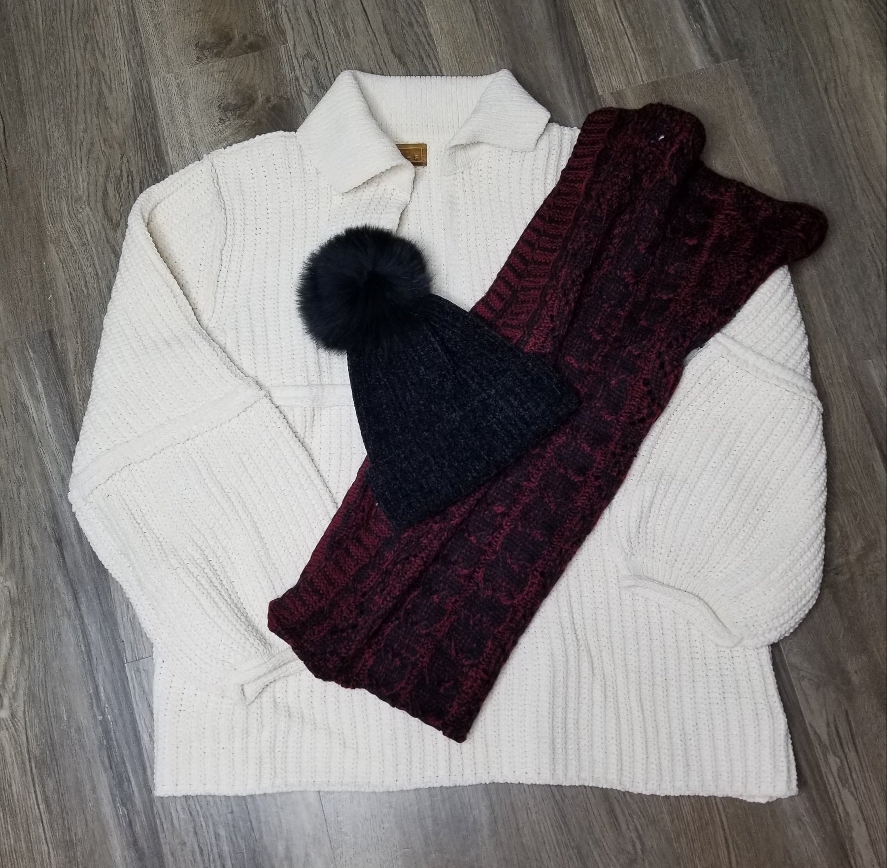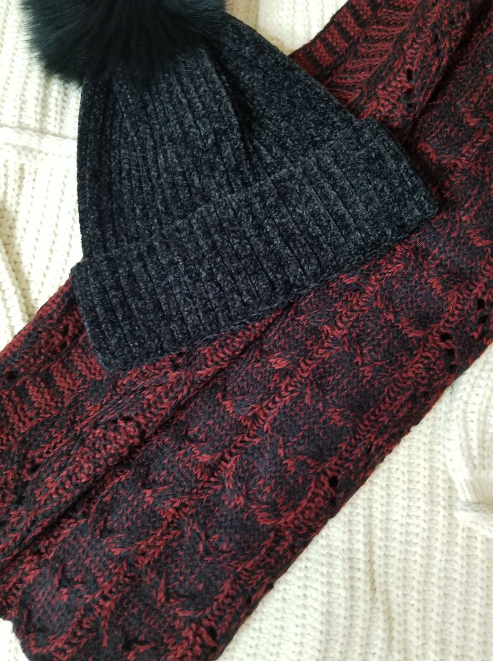 Chenille Pom Pom Beanie Hat