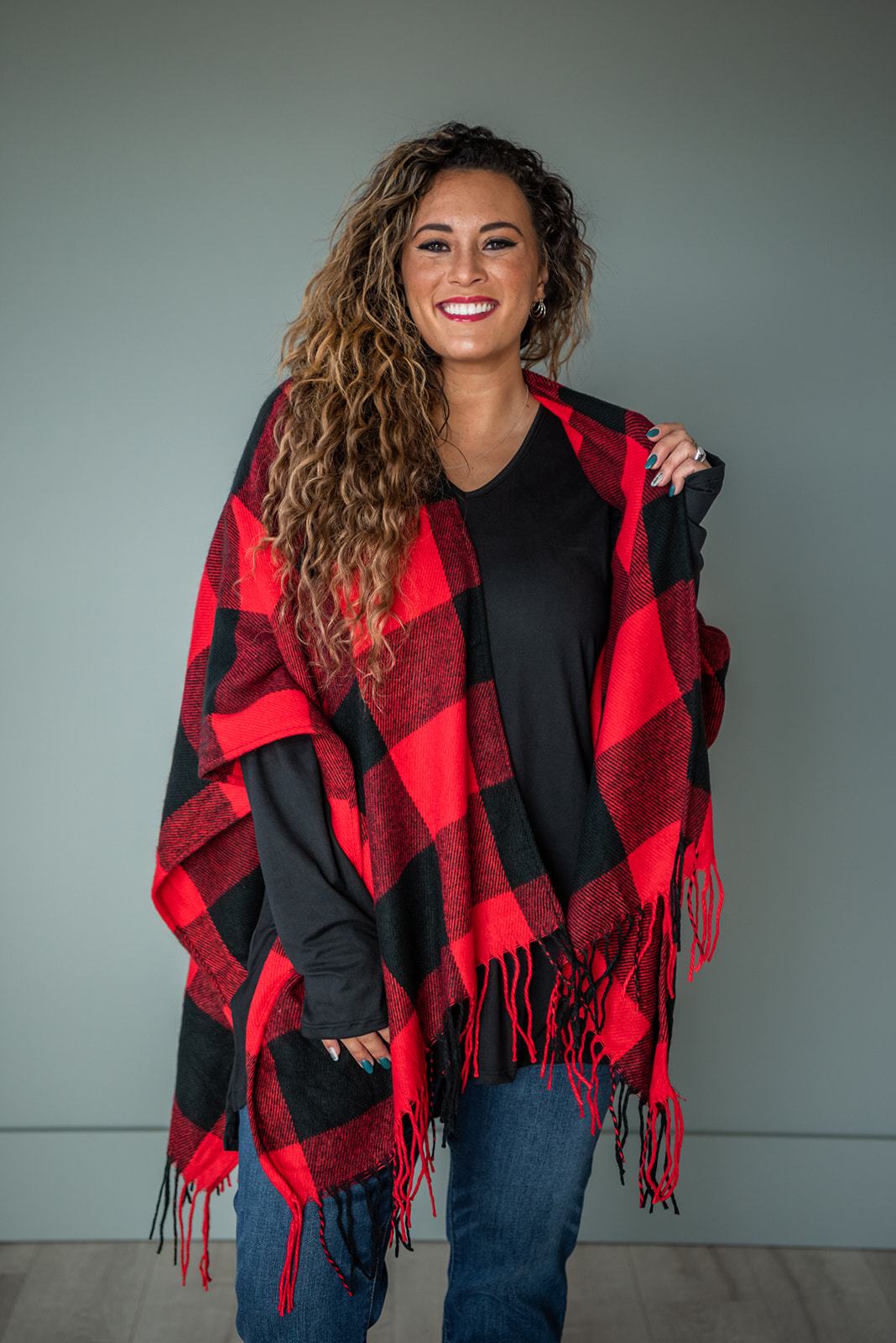 Here is a secret style life-hack tip that every girl needs to know...If you want to feel as if you are wearing a cozy blanket all day, but still incredibly chic then ponchos are for you! Throw the Cozy Love Buffalo Plaid Tassel Poncho on top of any outfit and the cozy factor is instantly raised! Features: Buffalo plaid tassel poncho, no armholes.