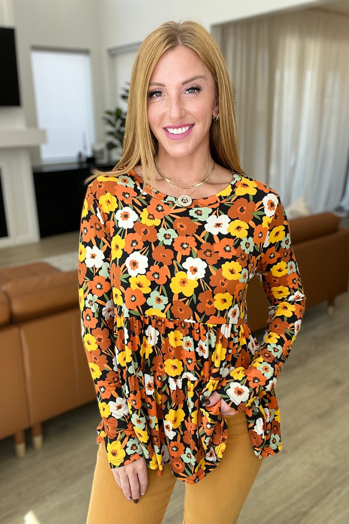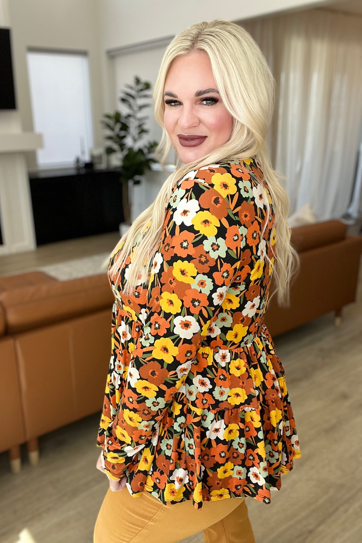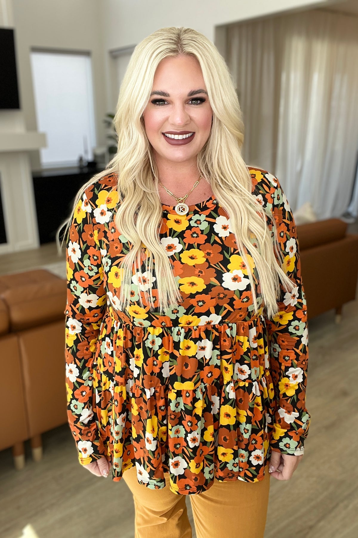 Just look at the beautiful blend of buttery soft fabric and vibrant floral: with a tiered babydoll silhouette, long sleeves, and delicate detailing, this top has everything you need to make a stylish statement! Get ready to take the world by storm in this gorgeous top!