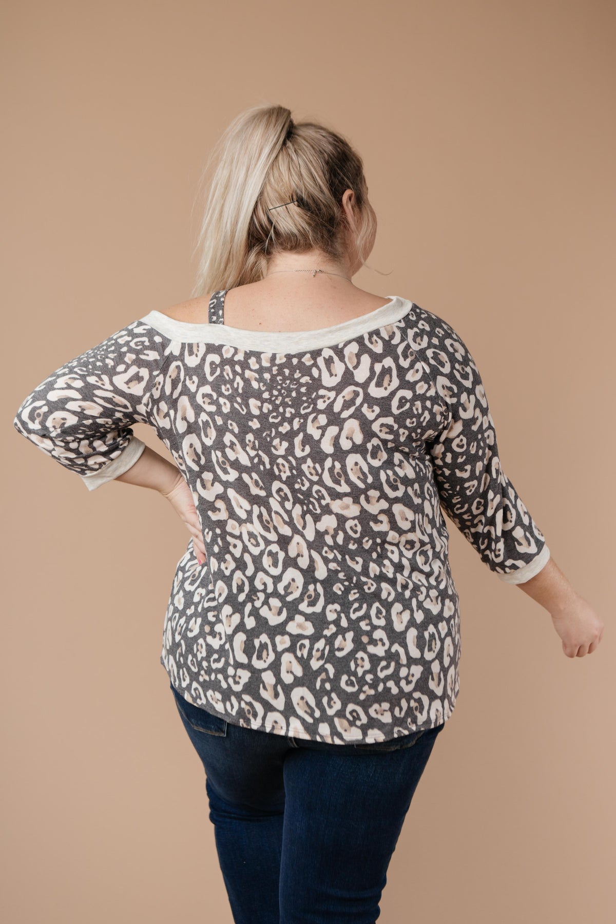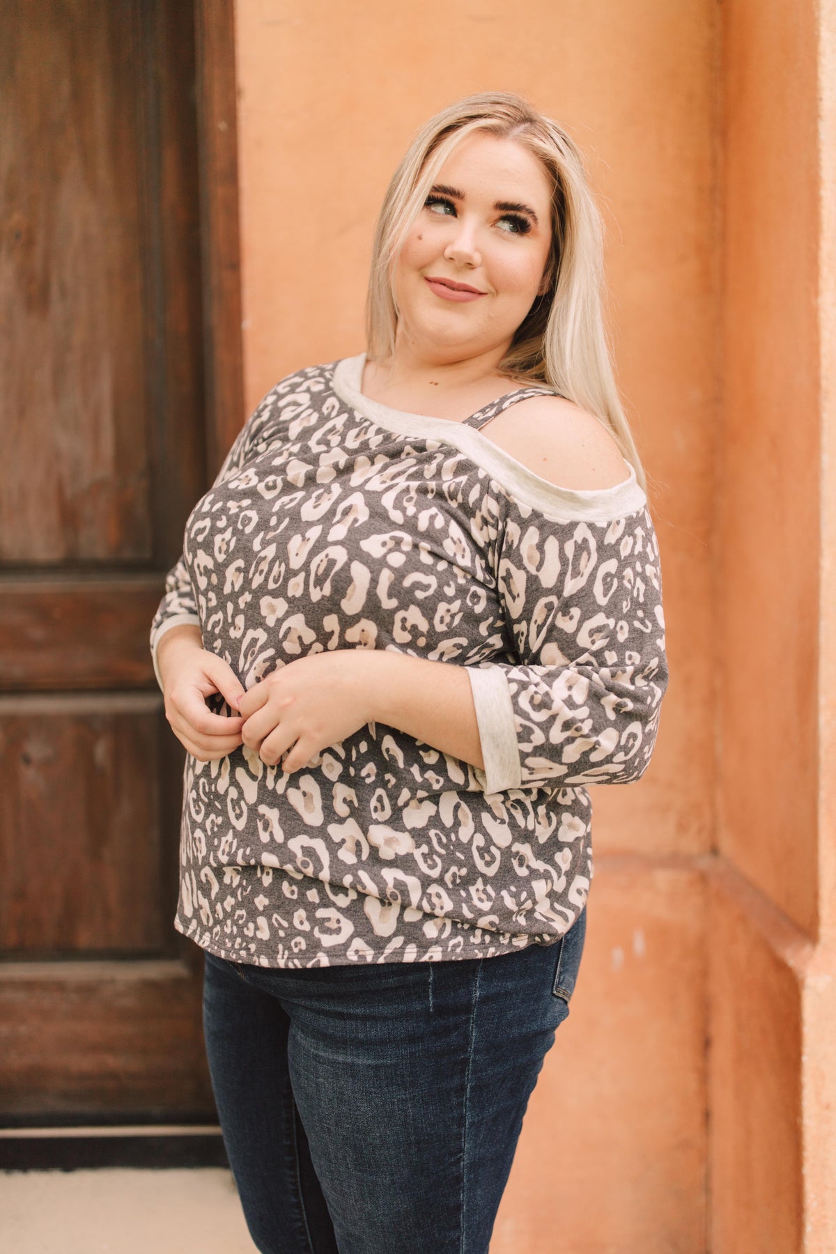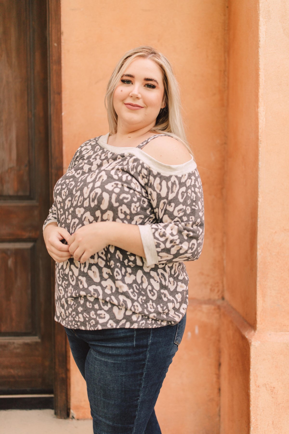 This animal print top will add bold pattern and fierceness to your wardrobe! It features a soft blend of lovely neutrals, an off the shoulder, and a slanted neckline with a strap so it stays in place! You'll adore the material and how lovely you feel while wearing it.