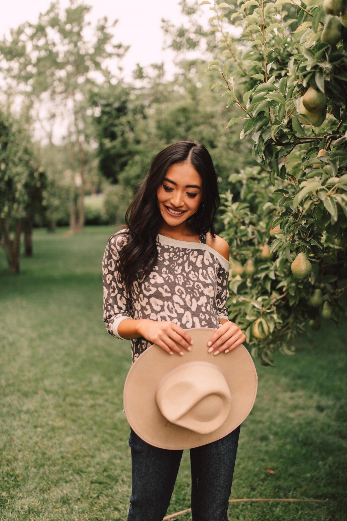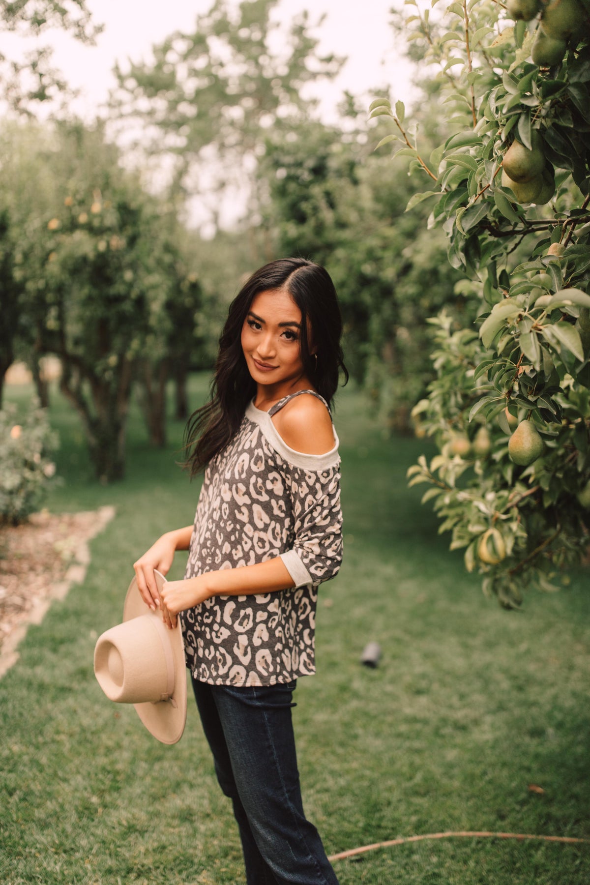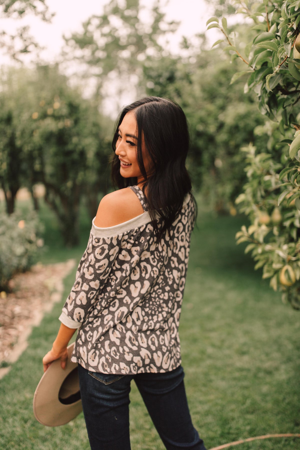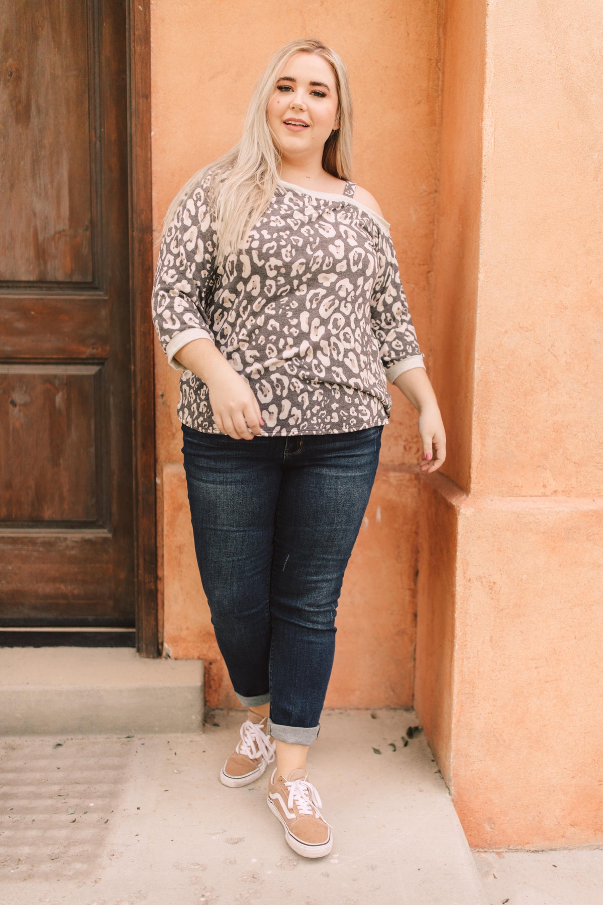 This animal print top will add bold pattern and fierceness to your wardrobe! It features a soft blend of lovely neutrals, an off the shoulder, and a slanted neckline with a strap so it stays in place! You'll adore the material and how lovely you feel while wearing it.