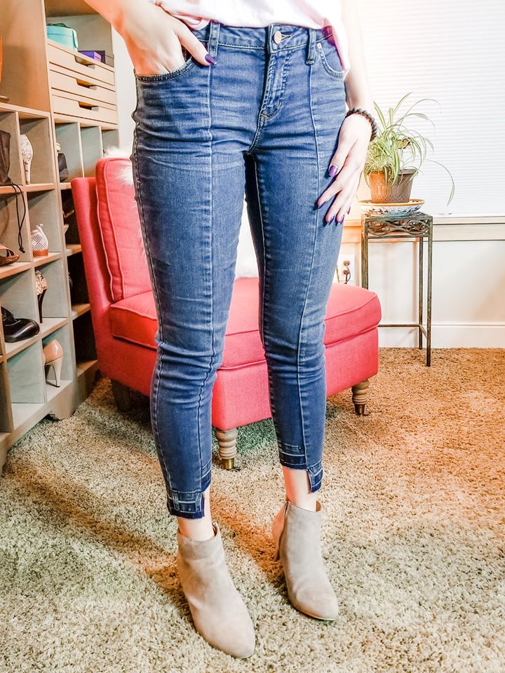 Hailey is modeling a size 26 and she typically wears a size 4 to 6 depending on the jean.