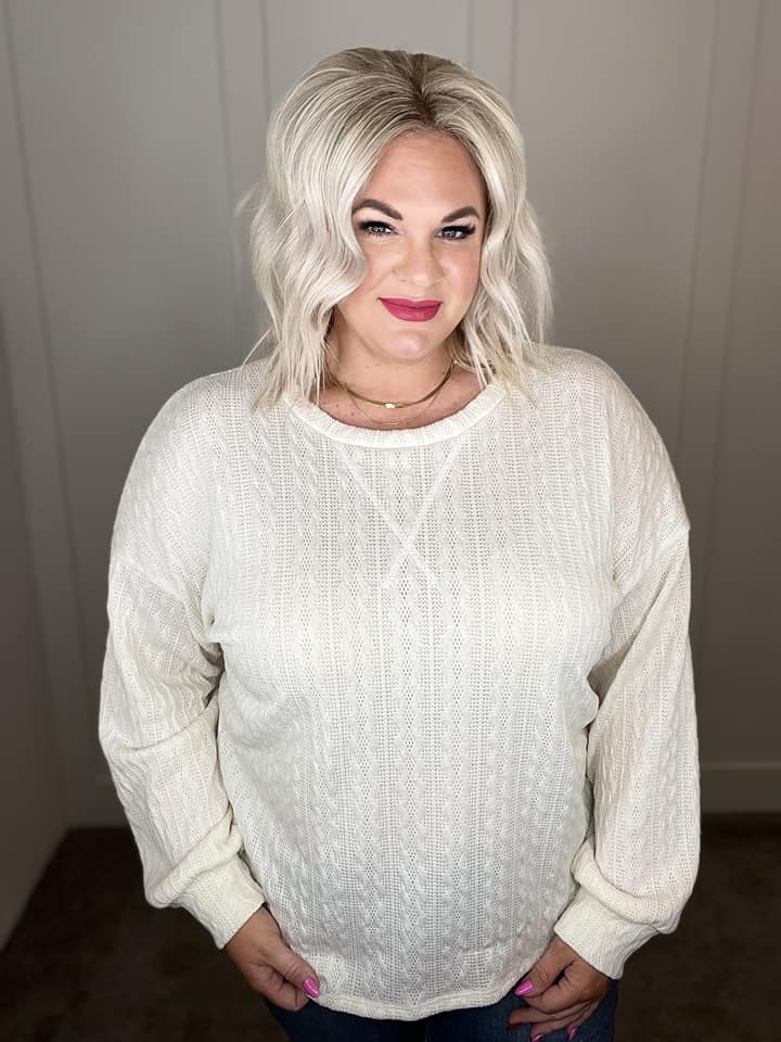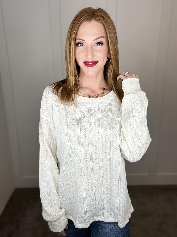 Lightweight Cable Knit Sweater in Cream
