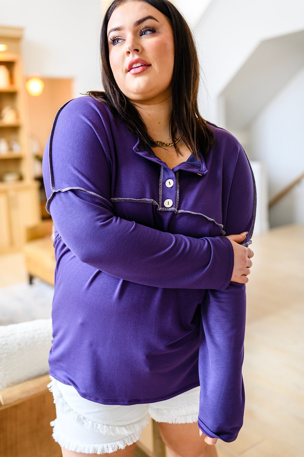 Lightweight French Terry Long Sleeve Henley in Royal Purple