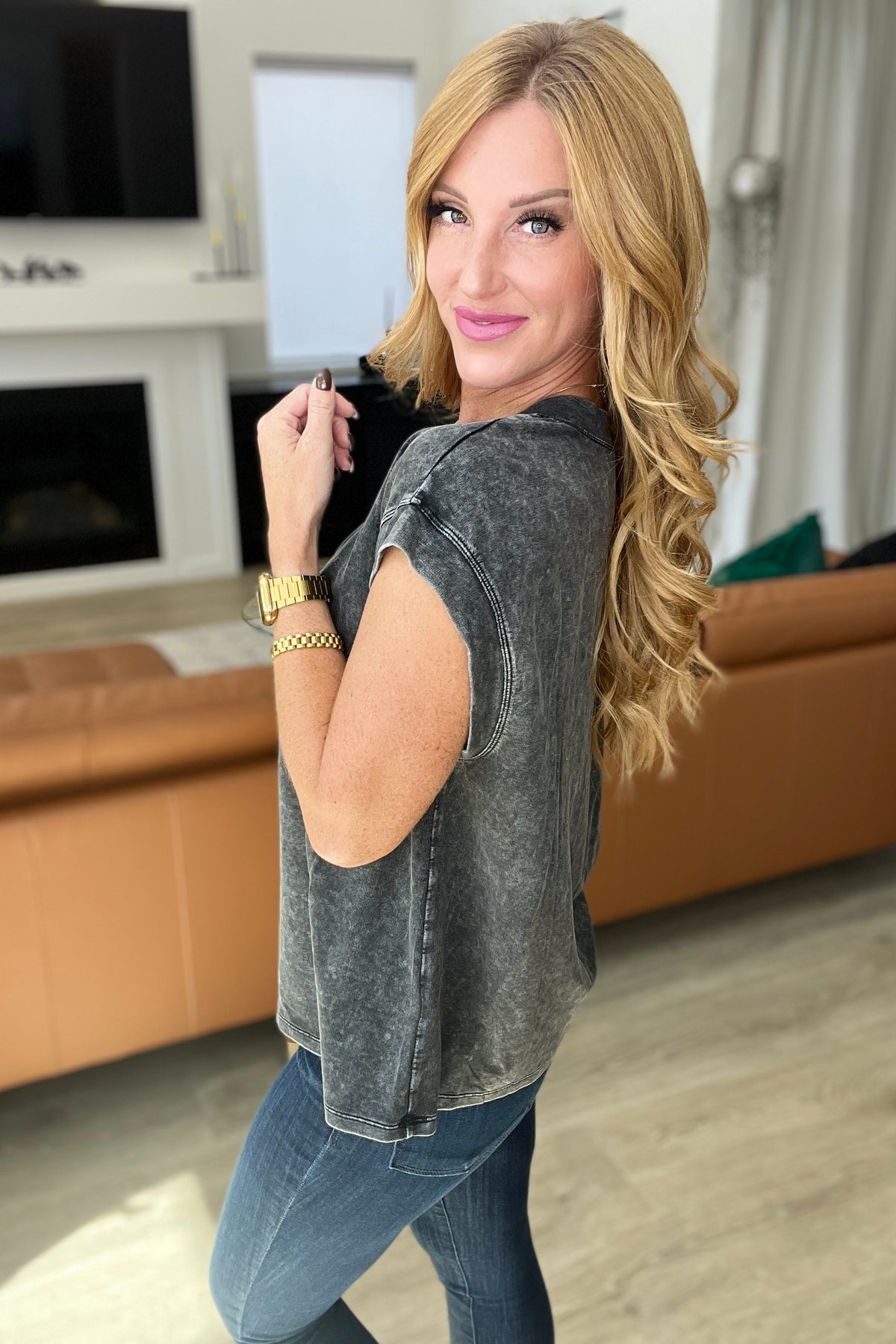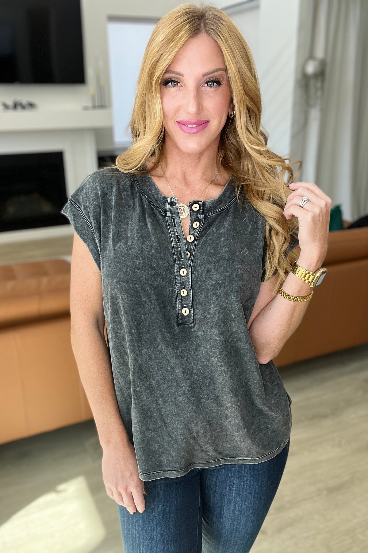 Crafted from mineral wash jersey knit, it features a round neckline, relaxed fit, and sleeveless design. The distinctive placarded button front is fully functional. Feel confident and comfortable in this fashionable top. And she's ubber soft! What's not to love?
