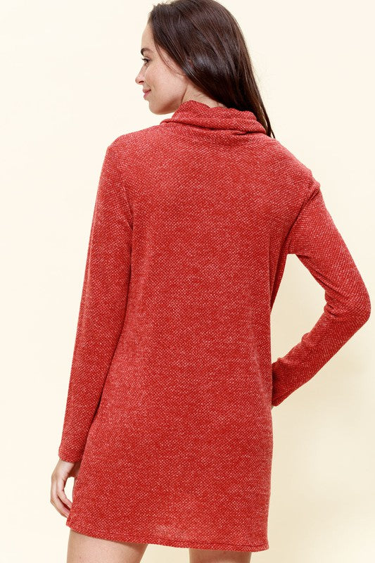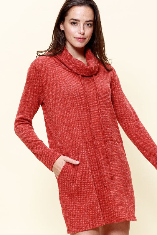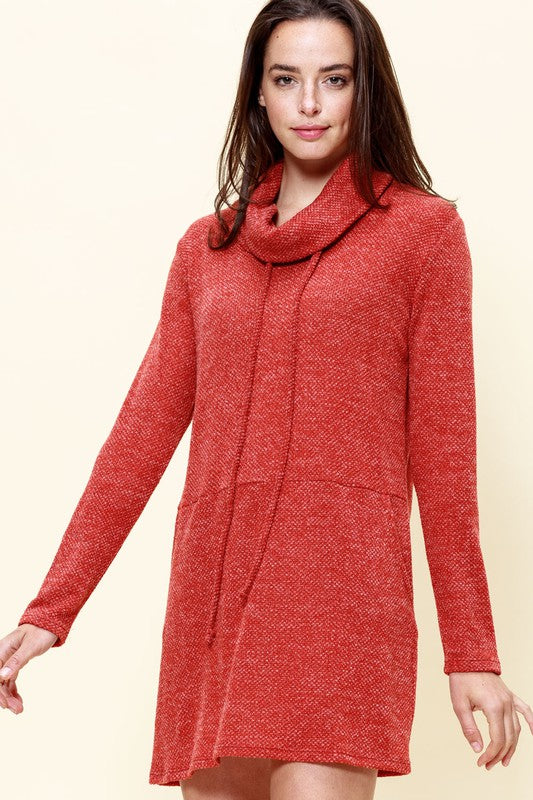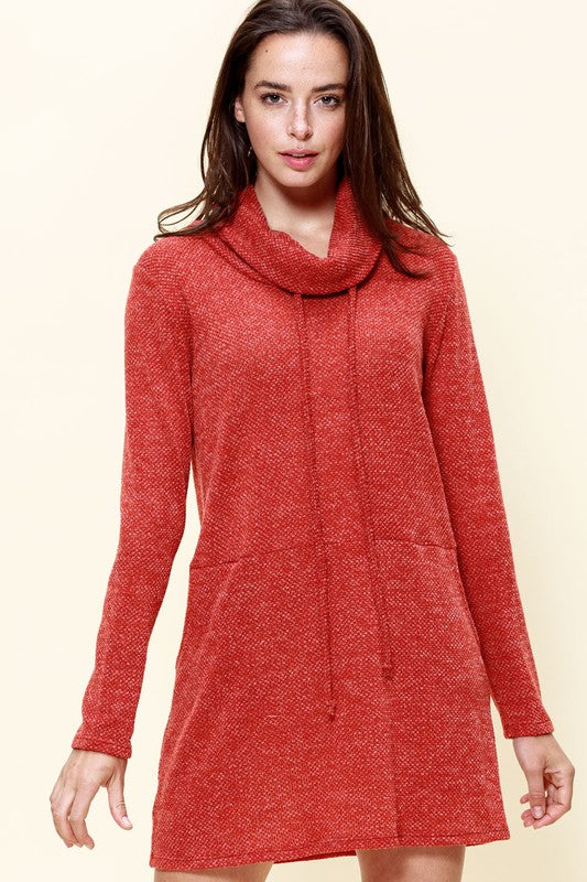This dress will leave you wondering how you've made it this far in life without it! It's made from a knit that is seriously soft and slightly textured. It features a cowl neck with adjustable drawstrings, pockets, and is a truly lovely shade of olive green! It also can easily be worn as a tunic or a dress!