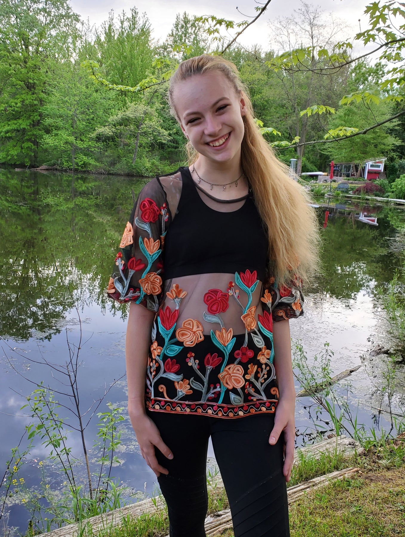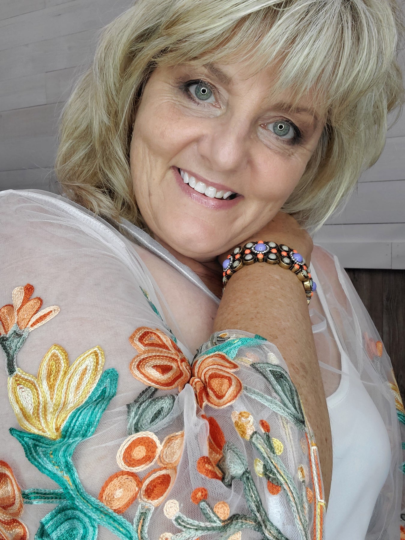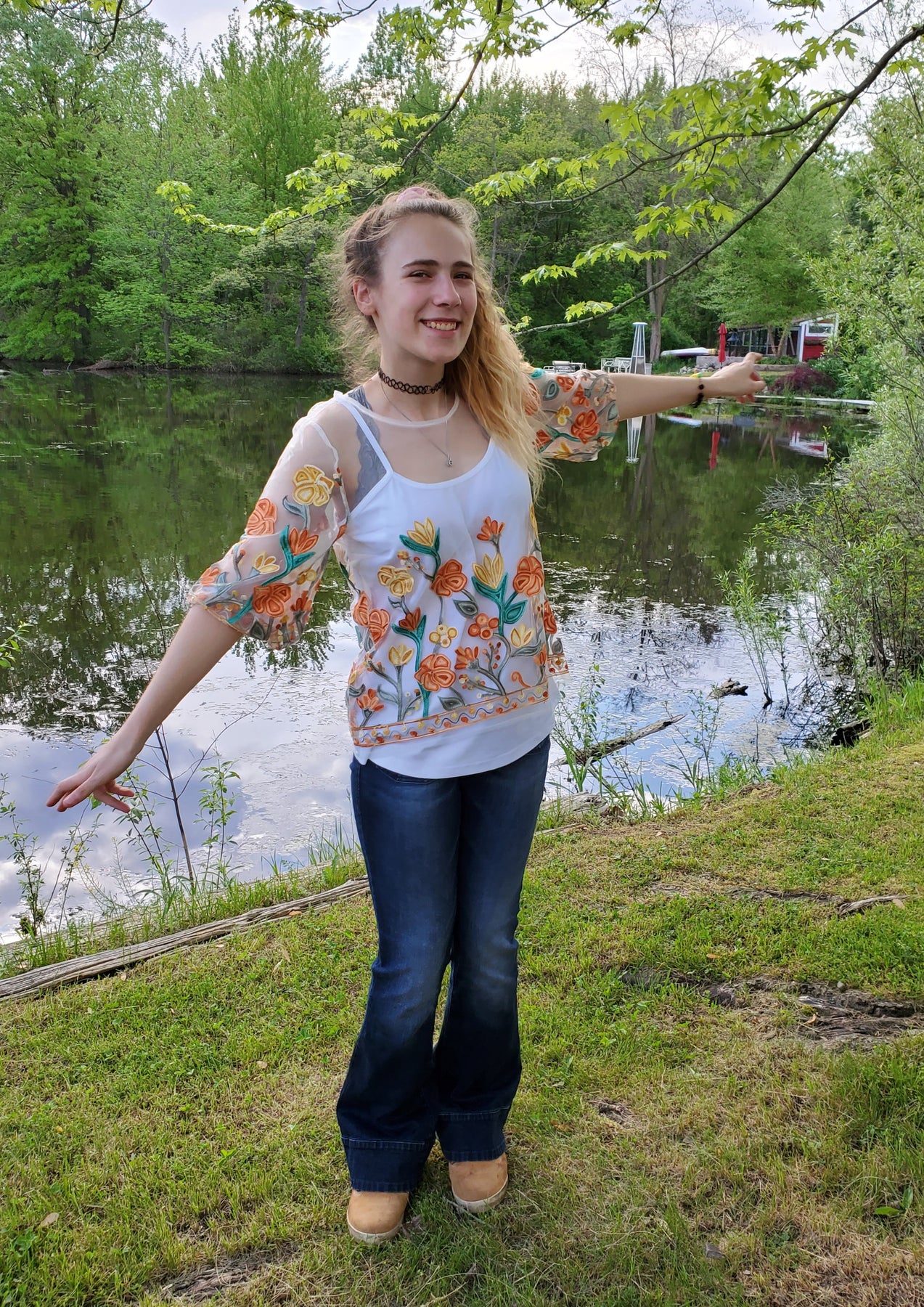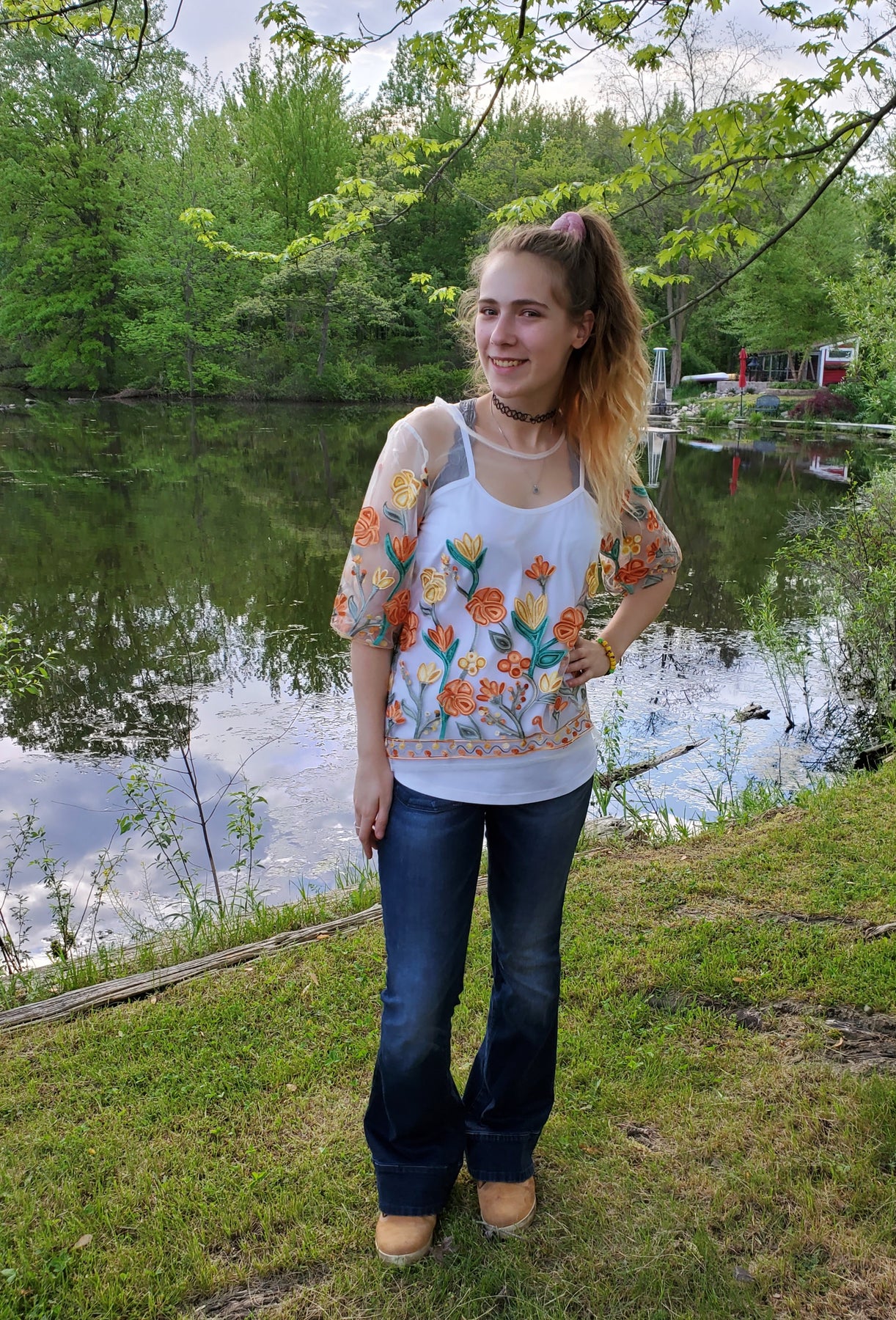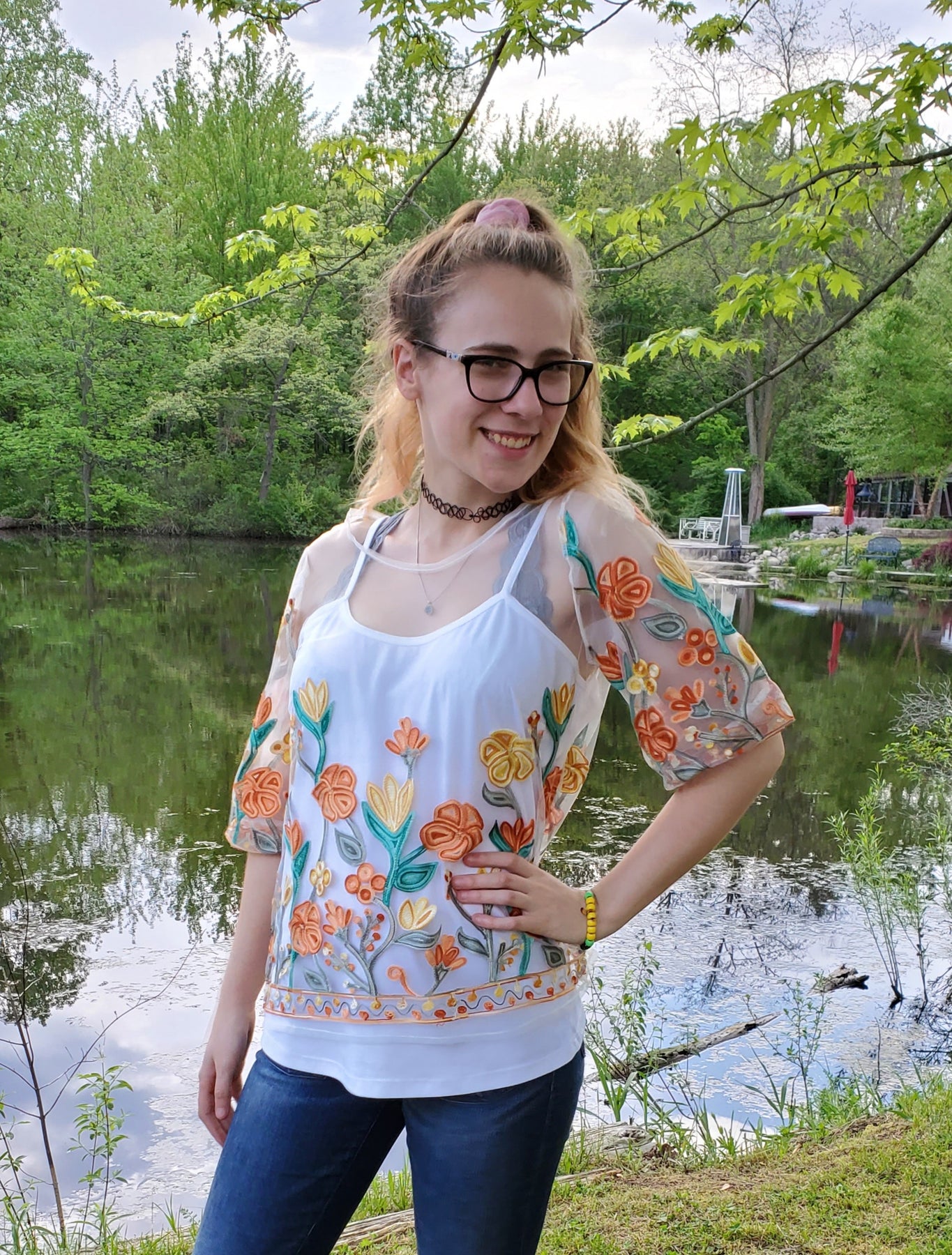 So cute ~ and the feminine.  Warp yourself up with amazing machine embroidered chain stitching in an array of summertime garden flowers.  Bright crisp colors against either a white (nearly clear) or black background.  Sassy, fun and unique!