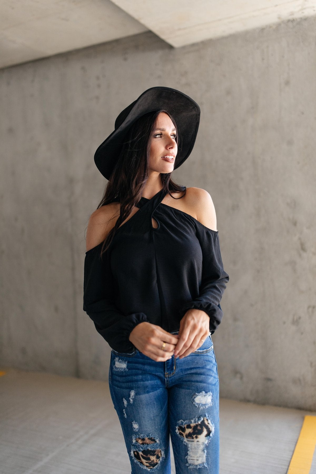 This black faux suede hat will instantly give you all the autumn vibes! It features an adorable braided band around the crown, a flat brim so it won't flop down in your face, and it's a classic black color that will match so many of your favorite fall fashion items! This hat is a no brainer. And if your not a hat wearer...hat walls are also a super hot trend these days!