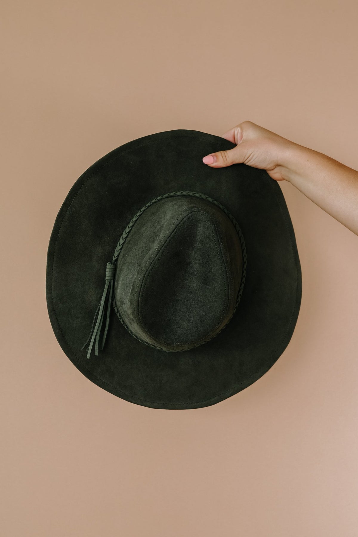 This olive colored faux suede hat will instantly give you all the autumn vibes! It features an adorable braided band around the crown, a flat brim so it won't flop down in your face, and it's a classic fall color that will match so many of your favorite fashion items! This hat is a no brainer. And if your not a hat wearer...hat walls are also a super hot trend these days!