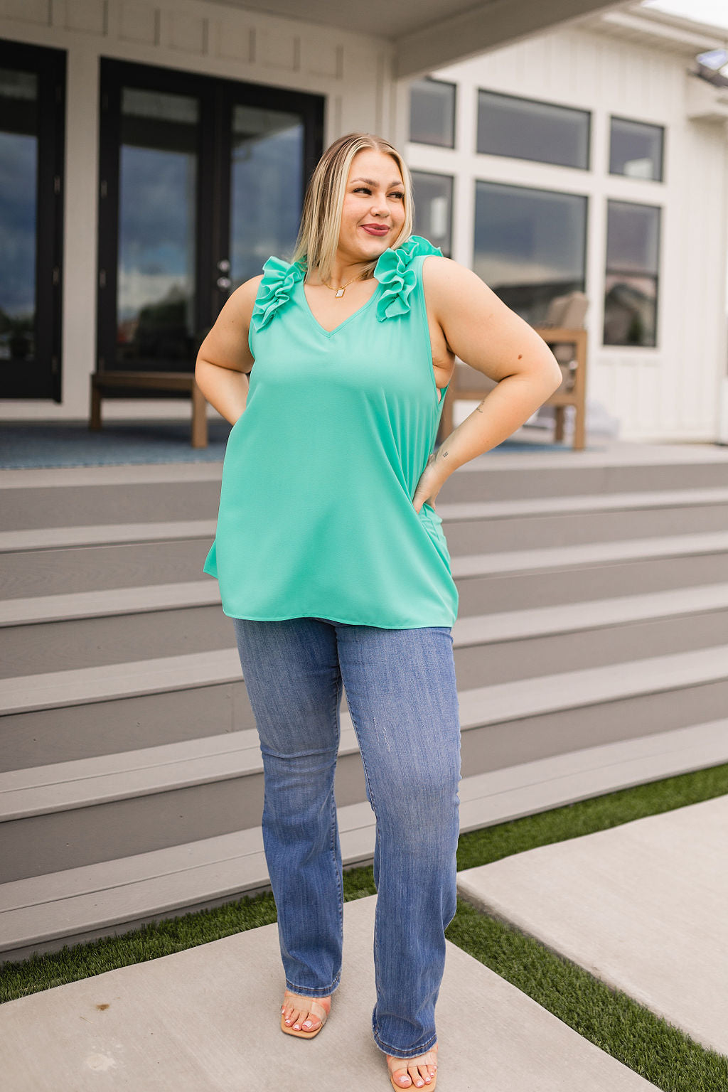 If you hear whispers as you walk by it's definitely people admiring your new top! Featuring a v-neckline, with sleeveless cut decorated in a ruffle detail that tops a flowy bodice with slightly rounded hem. The Trendsetter Tank is so stylish just like you!