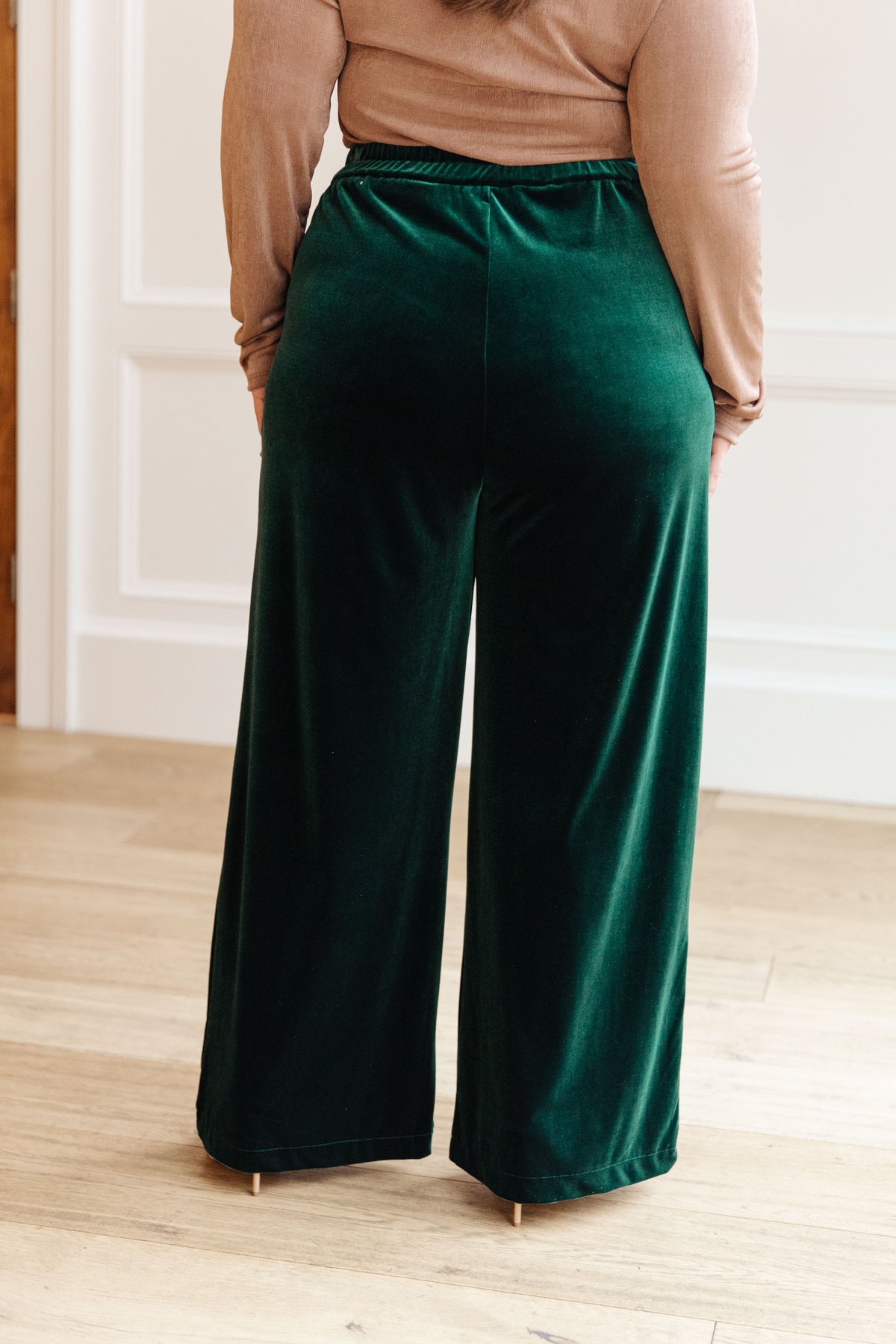 These Velvet Elvis Velvet Pants feel ultra-luxe and are guaranteed to make a bold statement. Cut from emerald velvet with a high-rise waist and wide-leg silhouette, this elegant piece is perfect for elevating any look. Wear yours to make a fashionable impression!