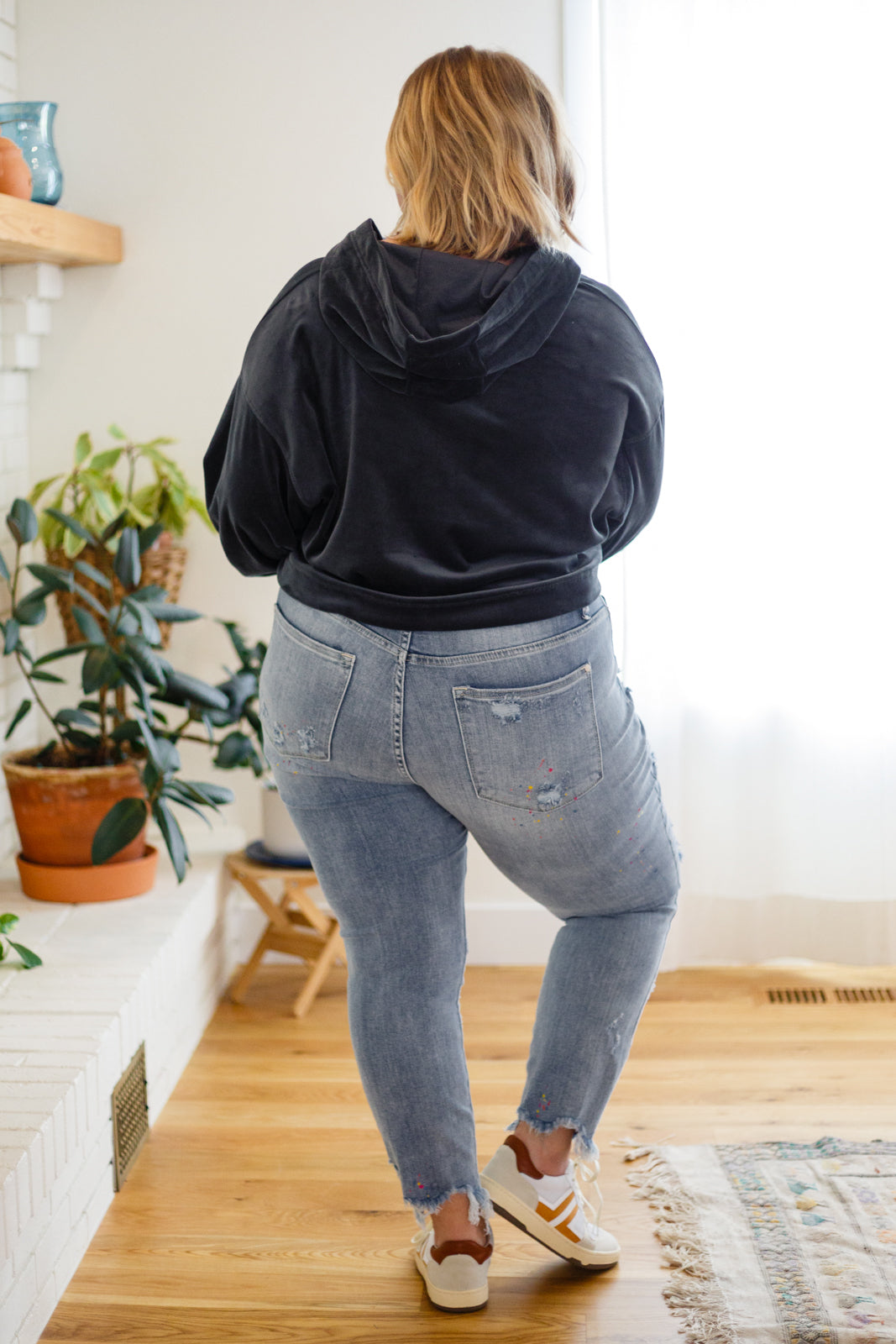 Are you looking for a comfortable, but stylish option that isn't blah? Well then cozy up in the Velvet Icon Hoodie! A stunning velvet fabric makes up this plush hoodie with a v-neckline and slightly cropped, boxy silhouette. Wear this to your next movie night or throw over your workout set for an on the go athleisure look. This is an all-in one style we know you will LOVE.